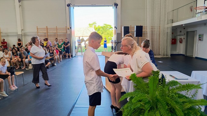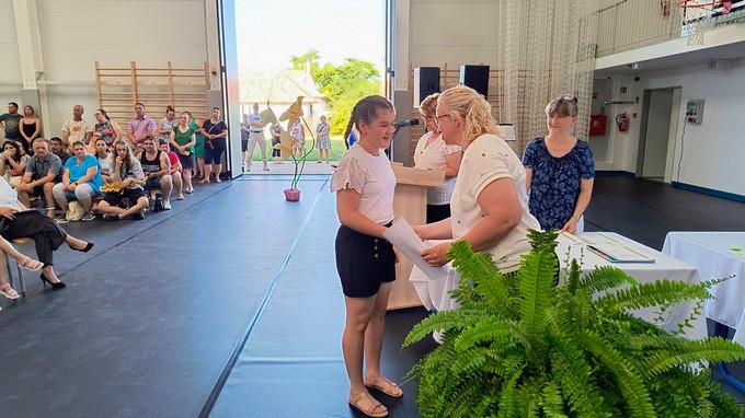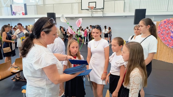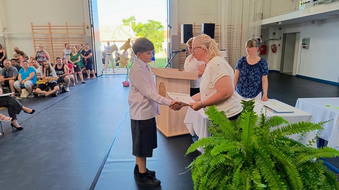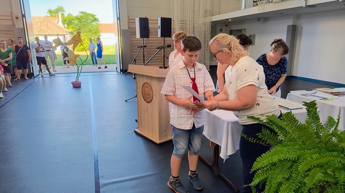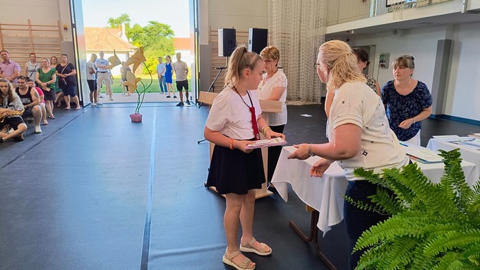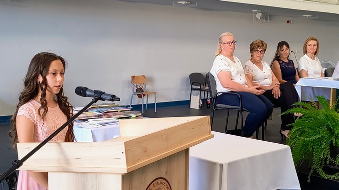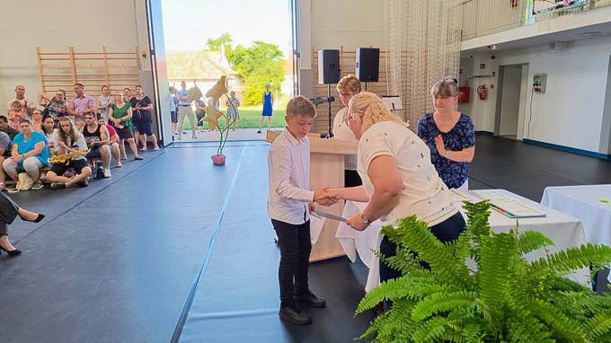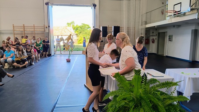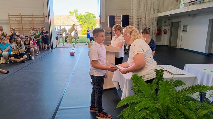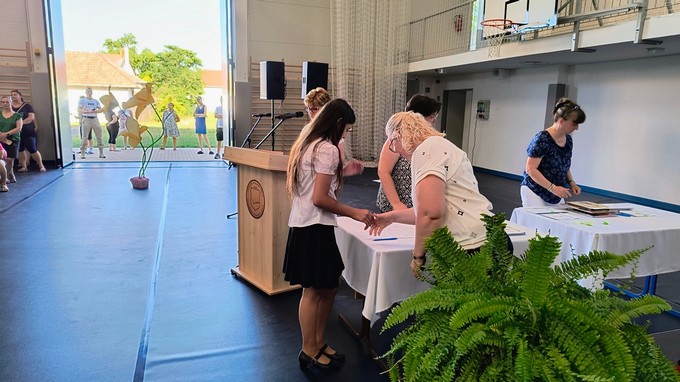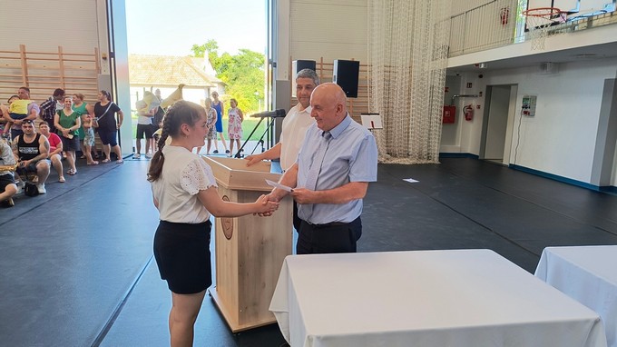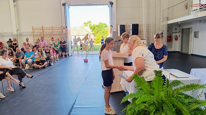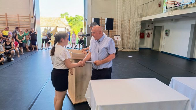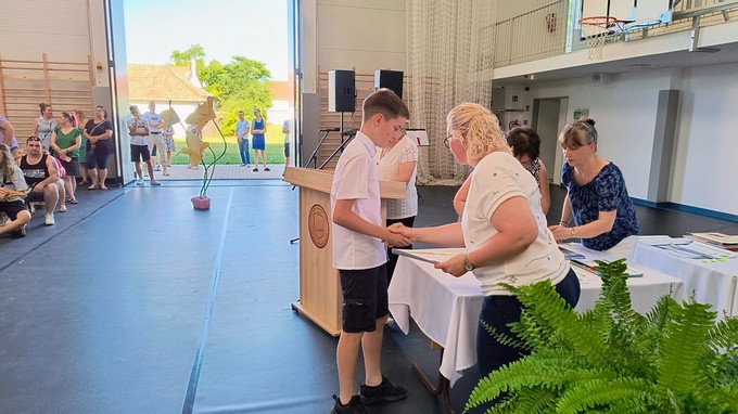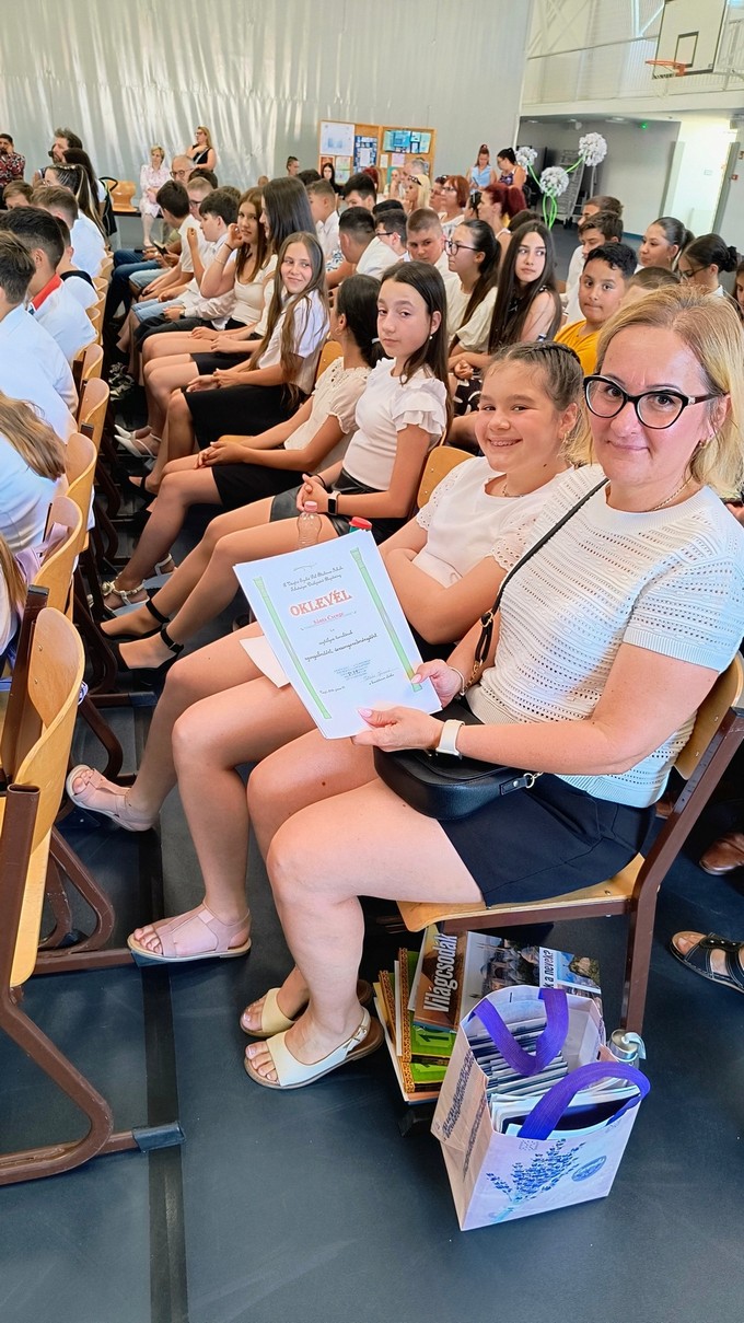 Ezt a könyvutalványt a 2024 - 2025. tanévben Forrás Boglárka 6. a osztályos tanuló kapta, melyet Csősz Ferenc, a Báthori István Gimnázium vésztői tagintézményének vezetője adott át. Végezetül Orbán István főigazgató megköszönte a szülők támogató munkáját, és minden iskolai dolgozónak a tanév során tett munkáját, amivel hozzájárult a tanév sikeréhez, majd lezárta a 2024/2025. tanévet.