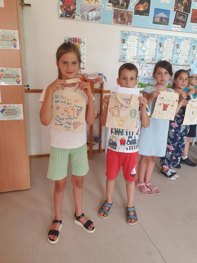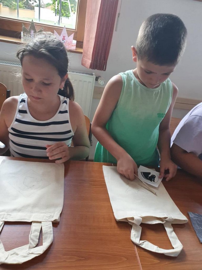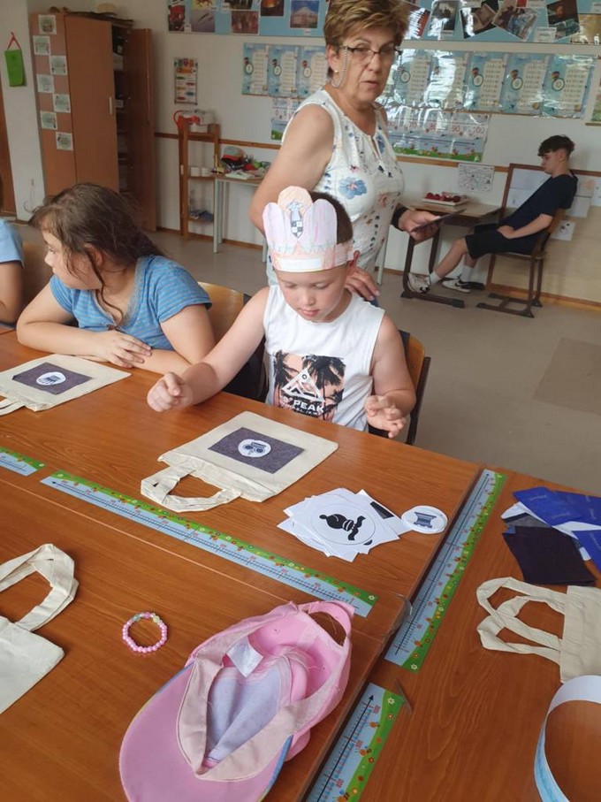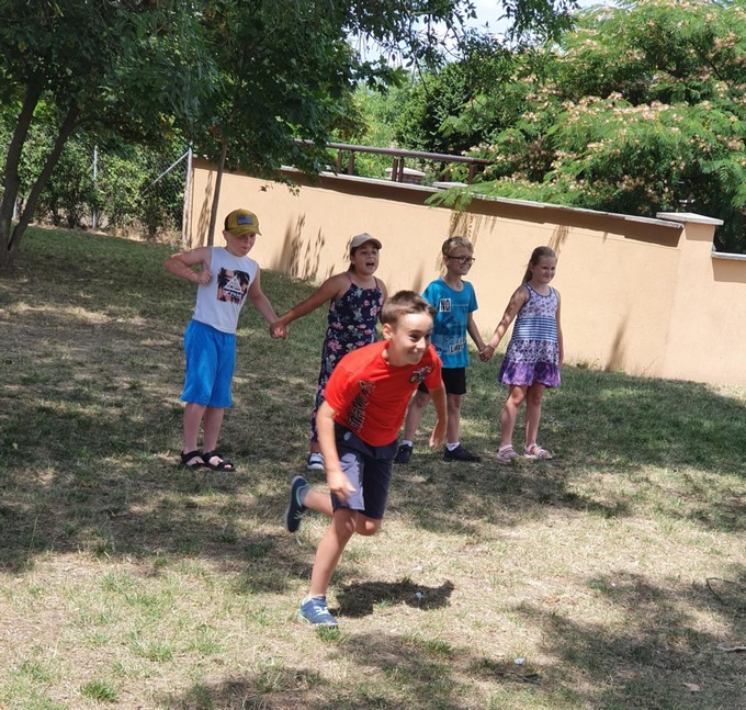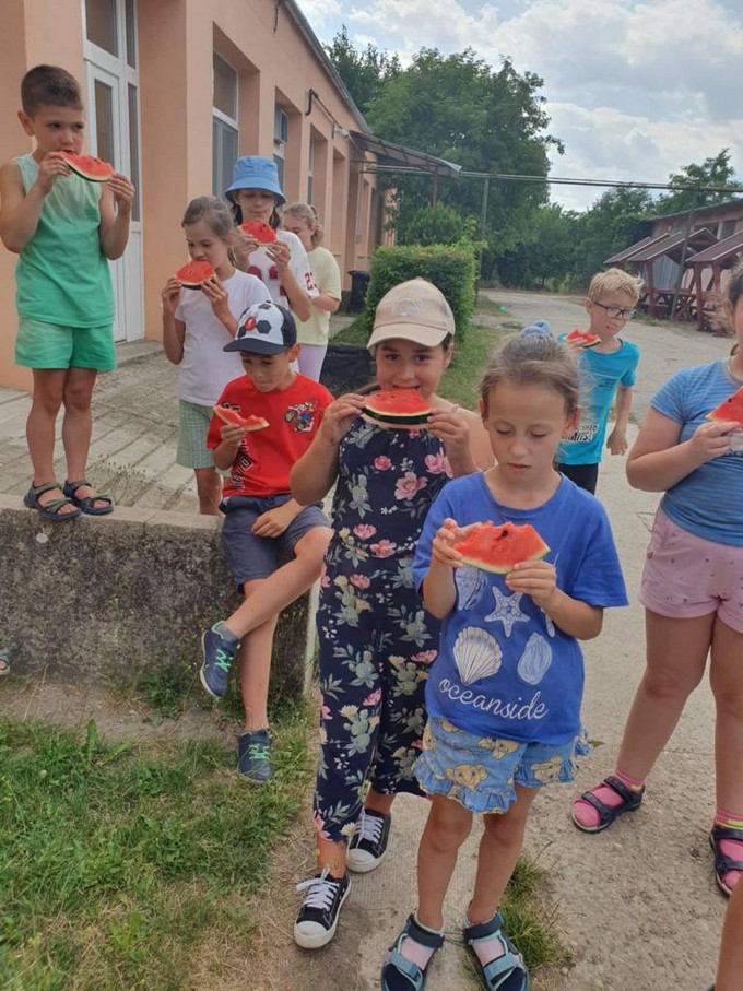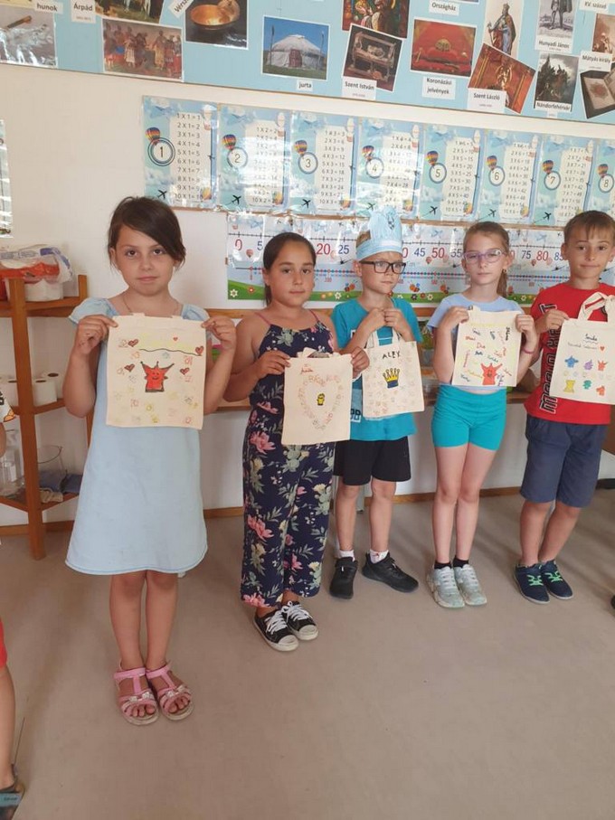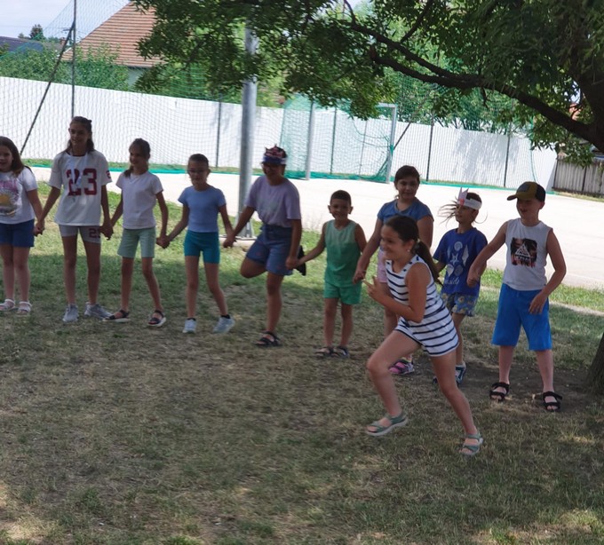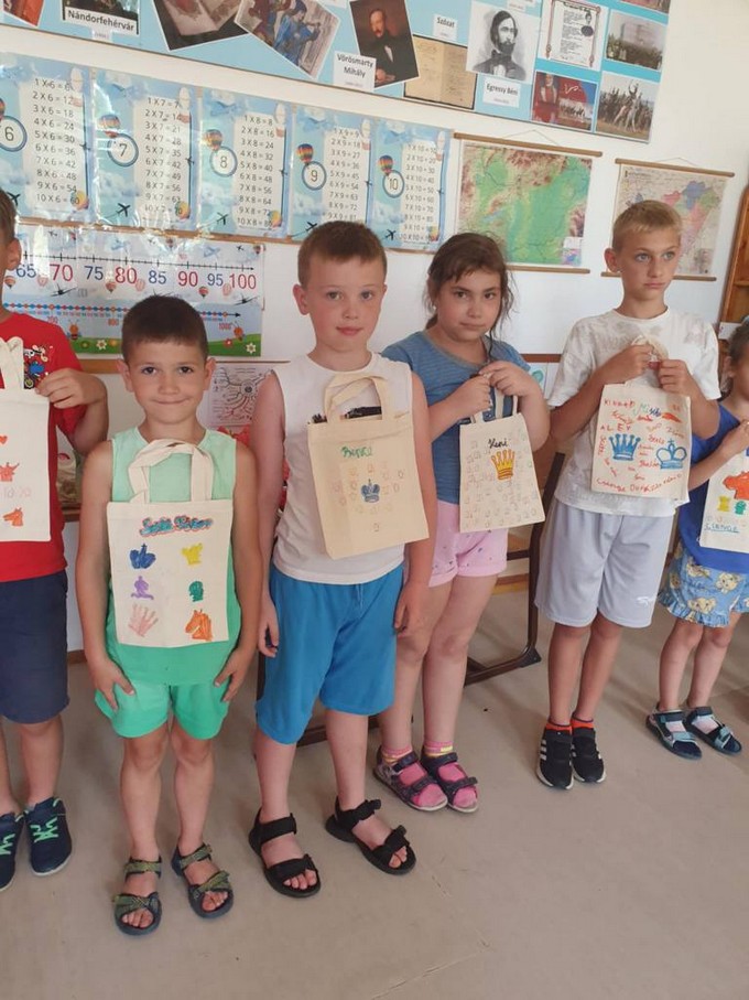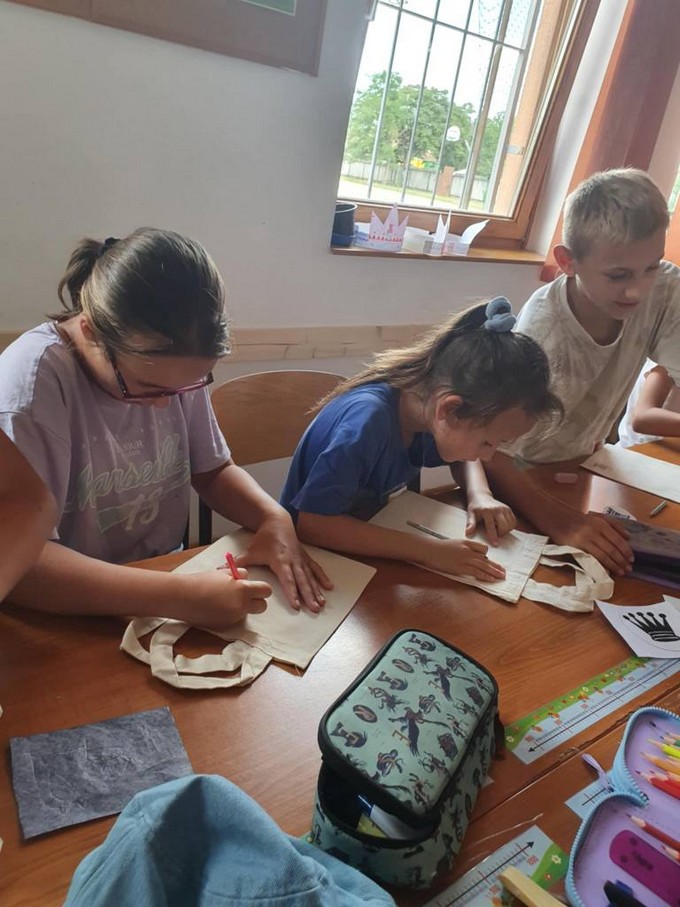 2025. június 30-án második alkalommal jelentkezhettek a Szabó Pál Ált. Isk. tanulói a Huszárné Müller Zita által vezetett sakktáborba. Az előző évihez hasonlóan nagyon sok játékos program ismerteti meg a gyerekekkel lépésről, lépésre ezt a stratégiai játékot, ami egyszerű és nagyszerű is egyben, figyelembe véve annak rengeteg fejlesztő hatását. A napunkat egy kis lelkesítő tornával indítottuk. A kézműves foglalkozásokon éppúgy, mint a nap során bármikor, a sakk kapta a főszerepet. A kreatív mintázatú koronákon, fejdíszeken a király és a vezér alakját színezték a résztvevők. A nagy meleg sem tartotta vissza a leendő sakkmestereket egy kis mozgásos játéktól. Remek hangulatban zajlott az Adj király katonát! A nap során a Monostor étteremben fogyasztottuk el az ebédünket udvarias és figyelmes kiszolgálás mellett. Az iskolában finom barack várta a sakkozókat. A délutánra tervezett tudás megszerzése után ismét kézműveskedés következett. Nagyon lelkesen vászontáskákat díszítettek a gyerekek, sakkfigurás nyomdákkal, textilfilcekkel. Alkotásaik olyan mutatósra sikerültek, hogy még szépségversenyre is ajánlották őket készítőik. Közeledve a foglalkozás vége felé, mindenki jóízűen fogyasztotta el egyik kedvenc gyümölcsét, a görögdinnyét.