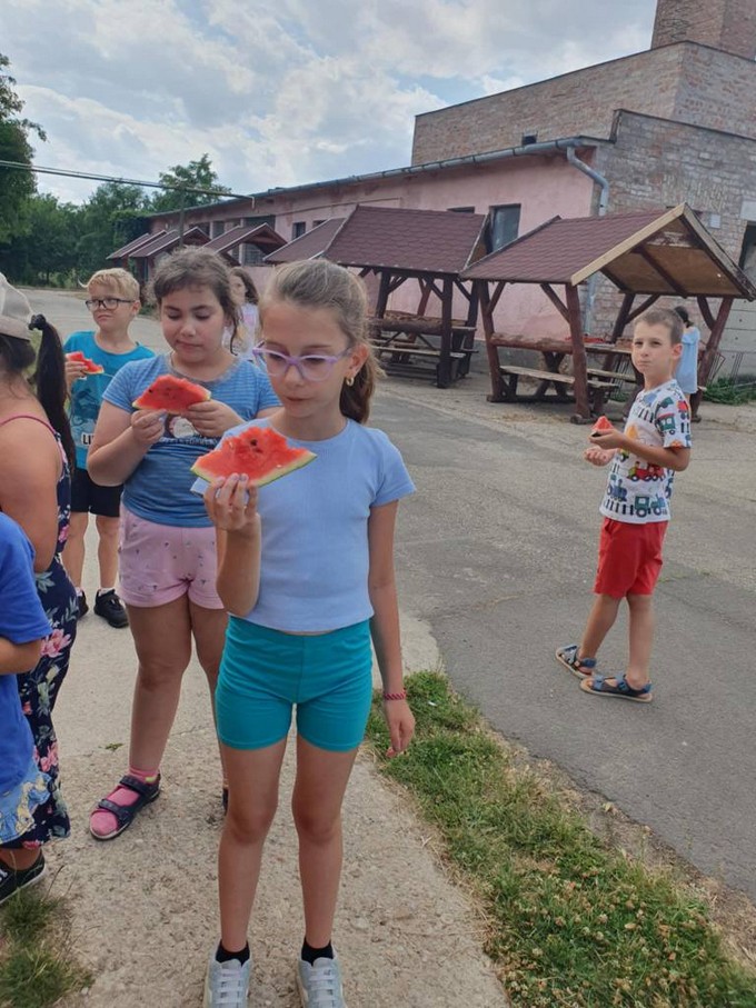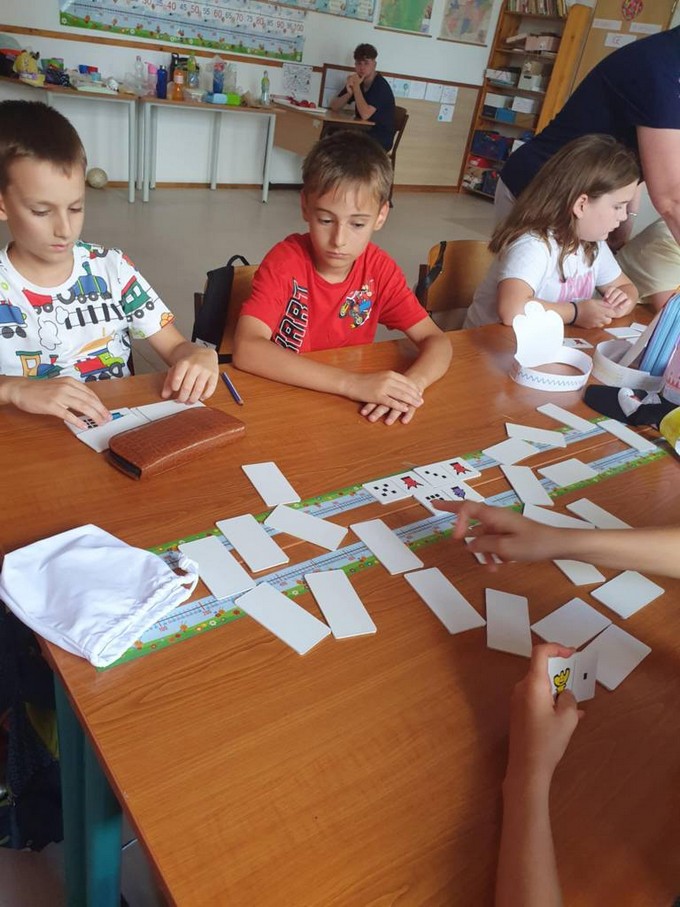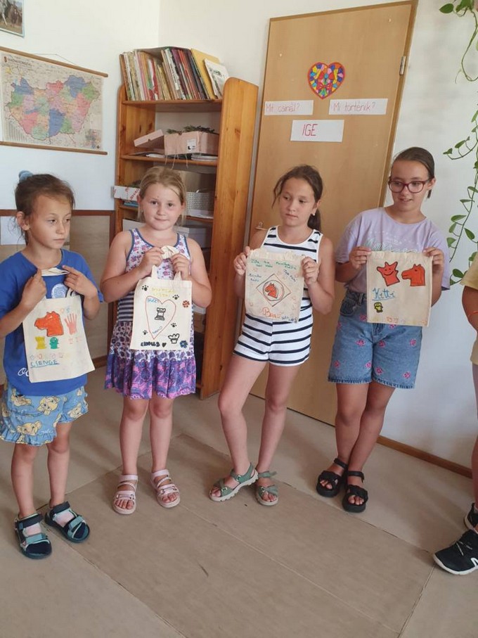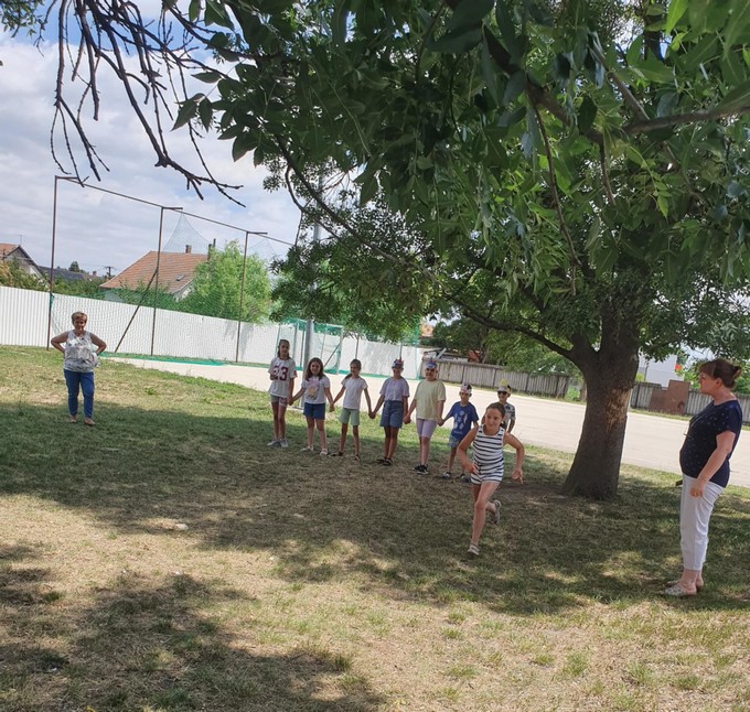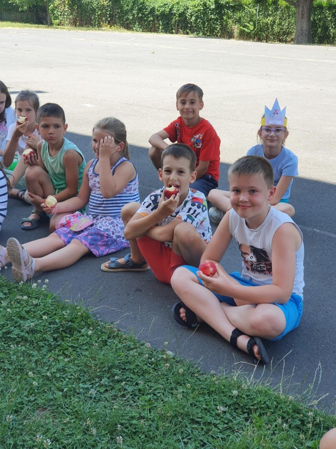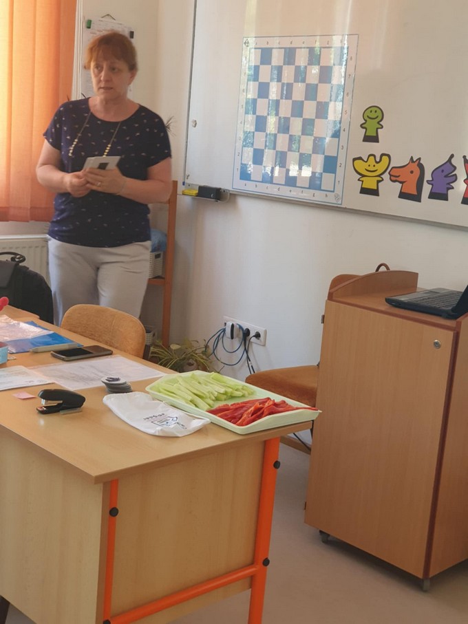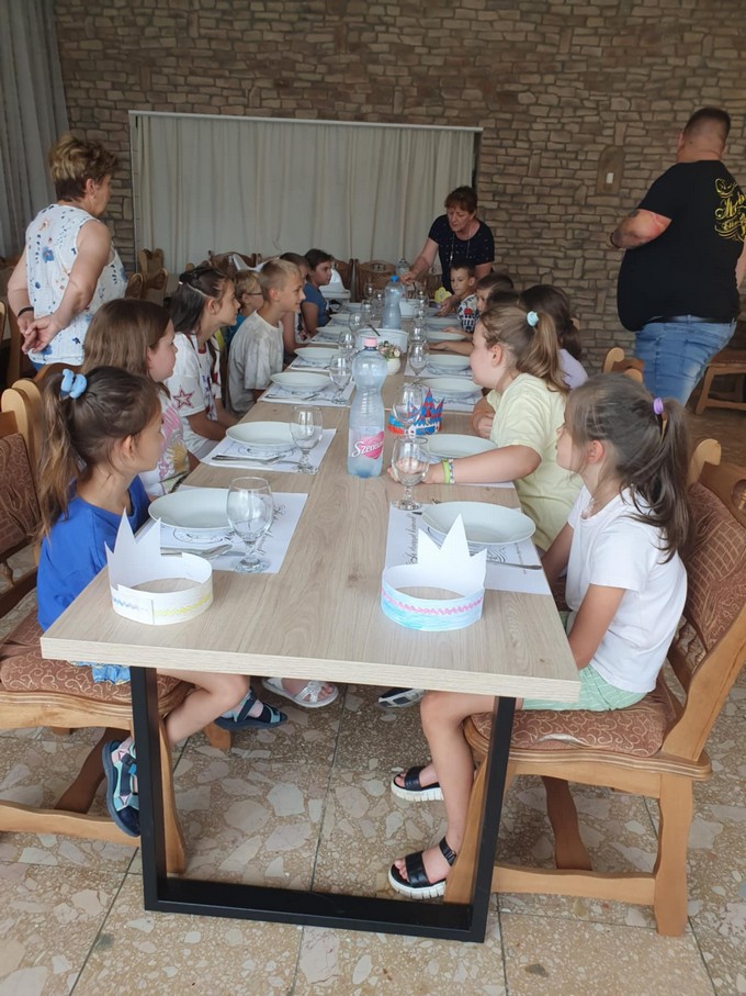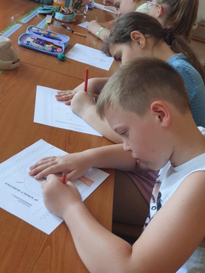 2025. június 30-án második alkalommal jelentkezhettek a Szabó Pál Ált. Isk. tanulói a Huszárné Müller Zita által vezetett sakktáborba. Az előző évihez hasonlóan nagyon sok játékos program ismerteti meg a gyerekekkel lépésről, lépésre ezt a stratégiai játékot, ami egyszerű és nagyszerű is egyben, figyelembe véve annak rengeteg fejlesztő hatását. A napunkat egy kis lelkesítő tornával indítottuk. A kézműves foglalkozásokon éppúgy, mint a nap során bármikor, a sakk kapta a főszerepet. A kreatív mintázatú koronákon, fejdíszeken a király és a vezér alakját színezték a résztvevők. A nagy meleg sem tartotta vissza a leendő sakkmestereket egy kis mozgásos játéktól. Remek hangulatban zajlott az Adj király katonát! A nap során a Monostor étteremben fogyasztottuk el az ebédünket udvarias és figyelmes kiszolgálás mellett. Az iskolában finom barack várta a sakkozókat. A délutánra tervezett tudás megszerzése után ismét kézműveskedés következett. Nagyon lelkesen vászontáskákat díszítettek a gyerekek, sakkfigurás nyomdákkal, textilfilcekkel. Alkotásaik olyan mutatósra sikerültek, hogy még szépségversenyre is ajánlották őket készítőik. Közeledve a foglalkozás vége felé, mindenki jóízűen fogyasztotta el egyik kedvenc gyümölcsét, a görögdinnyét.