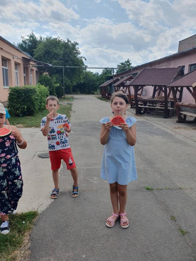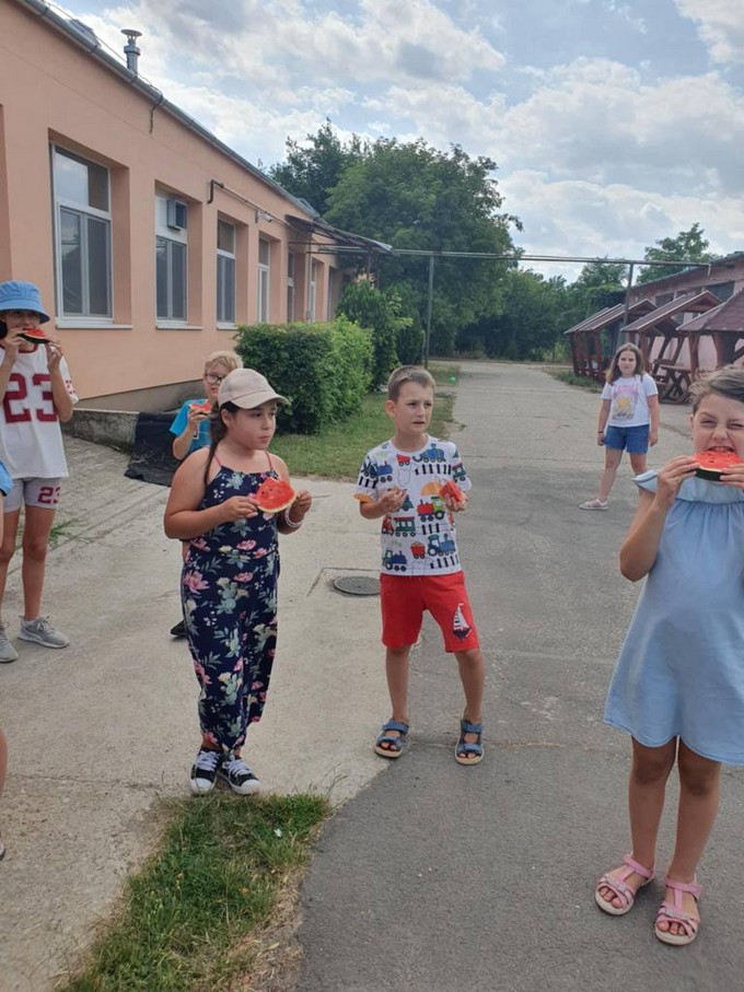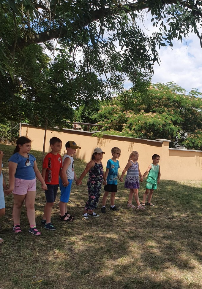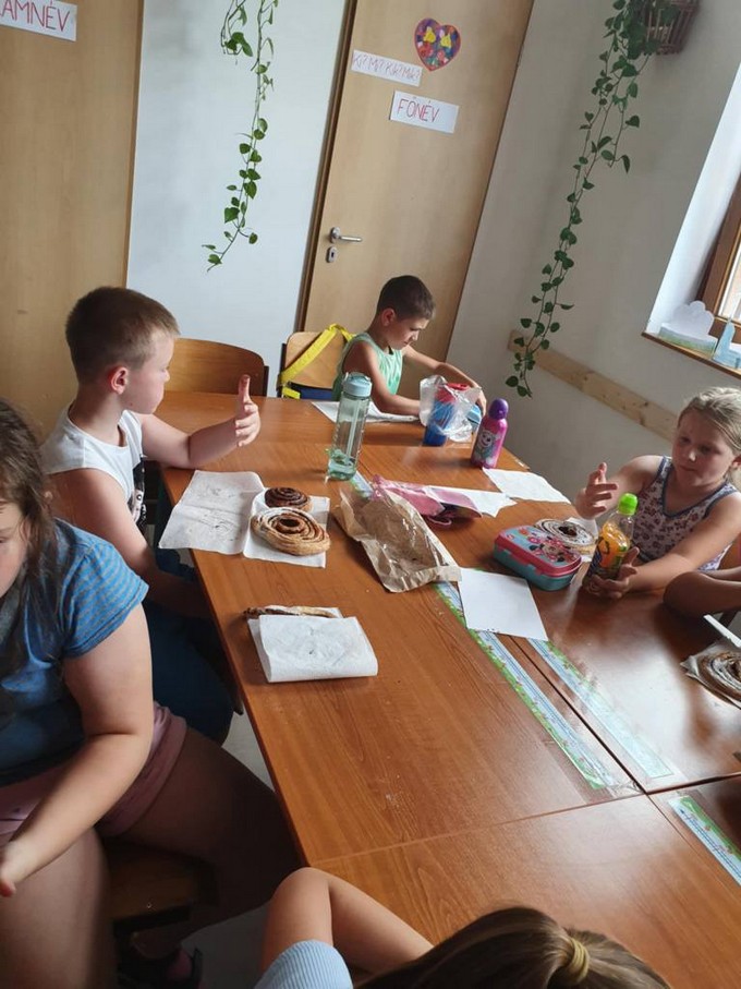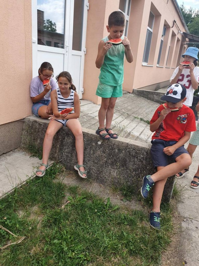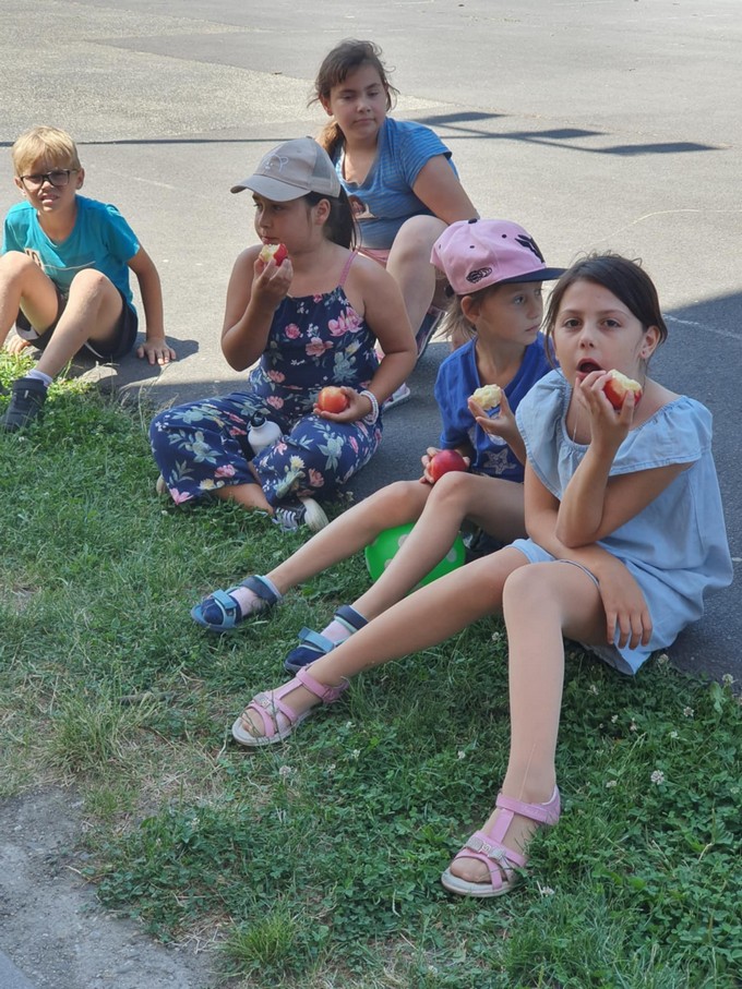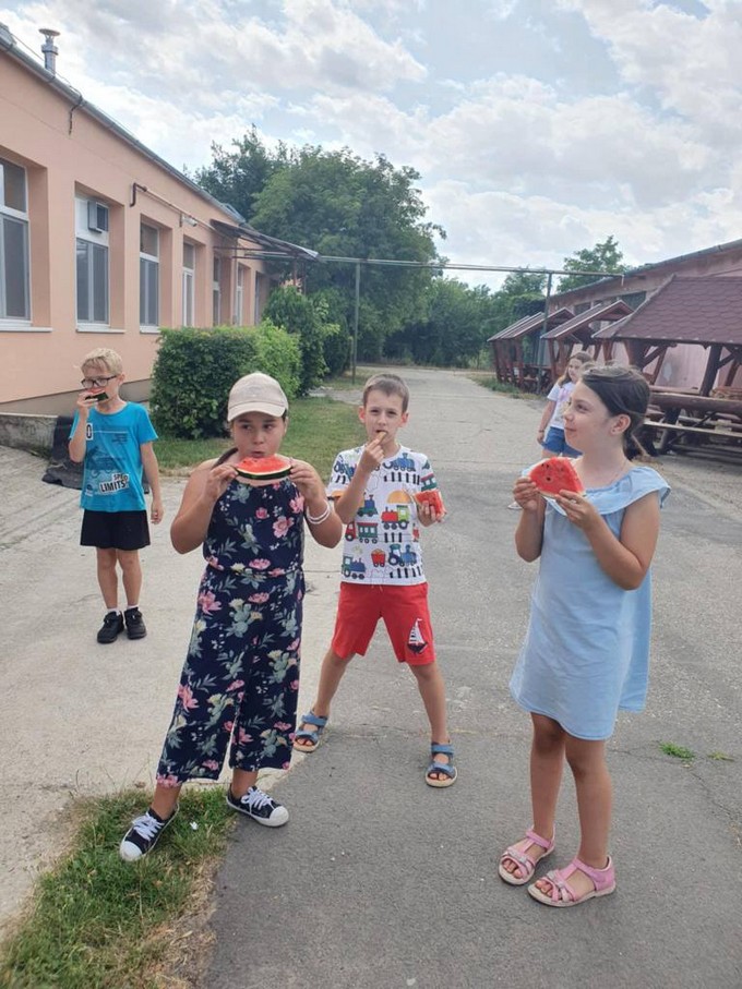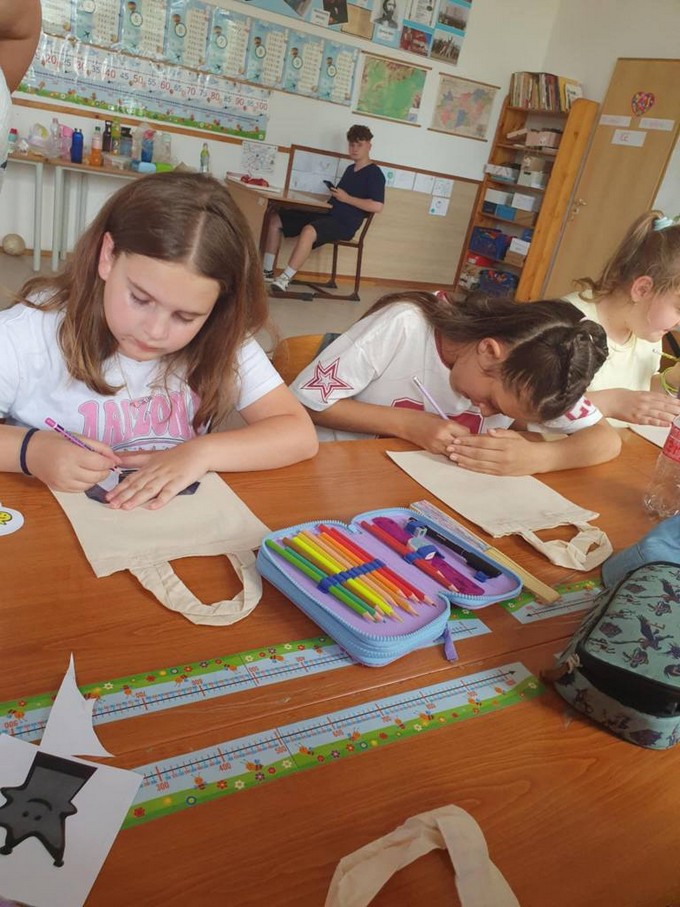 2025. június 30-án második alkalommal jelentkezhettek a Szabó Pál Ált. Isk. tanulói a Huszárné Müller Zita által vezetett sakktáborba. Az előző évihez hasonlóan nagyon sok játékos program ismerteti meg a gyerekekkel lépésről, lépésre ezt a stratégiai játékot, ami egyszerű és nagyszerű is egyben, figyelembe véve annak rengeteg fejlesztő hatását. A napunkat egy kis lelkesítő tornával indítottuk. A kézműves foglalkozásokon éppúgy, mint a nap során bármikor, a sakk kapta a főszerepet. A kreatív mintázatú koronákon, fejdíszeken a király és a vezér alakját színezték a résztvevők. A nagy meleg sem tartotta vissza a leendő sakkmestereket egy kis mozgásos játéktól. Remek hangulatban zajlott az Adj király katonát! A nap során a Monostor étteremben fogyasztottuk el az ebédünket udvarias és figyelmes kiszolgálás mellett. Az iskolában finom barack várta a sakkozókat. A délutánra tervezett tudás megszerzése után ismét kézműveskedés következett. Nagyon lelkesen vászontáskákat díszítettek a gyerekek, sakkfigurás nyomdákkal, textilfilcekkel. Alkotásaik olyan mutatósra sikerültek, hogy még szépségversenyre is ajánlották őket készítőik. Közeledve a foglalkozás vége felé, mindenki jóízűen fogyasztotta el egyik kedvenc gyümölcsét, a görögdinnyét.