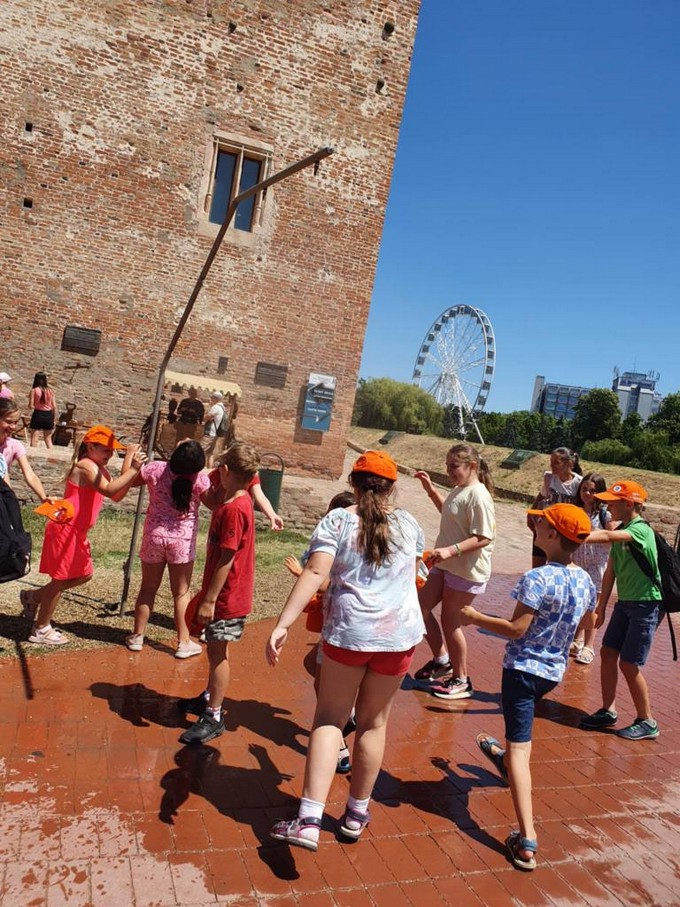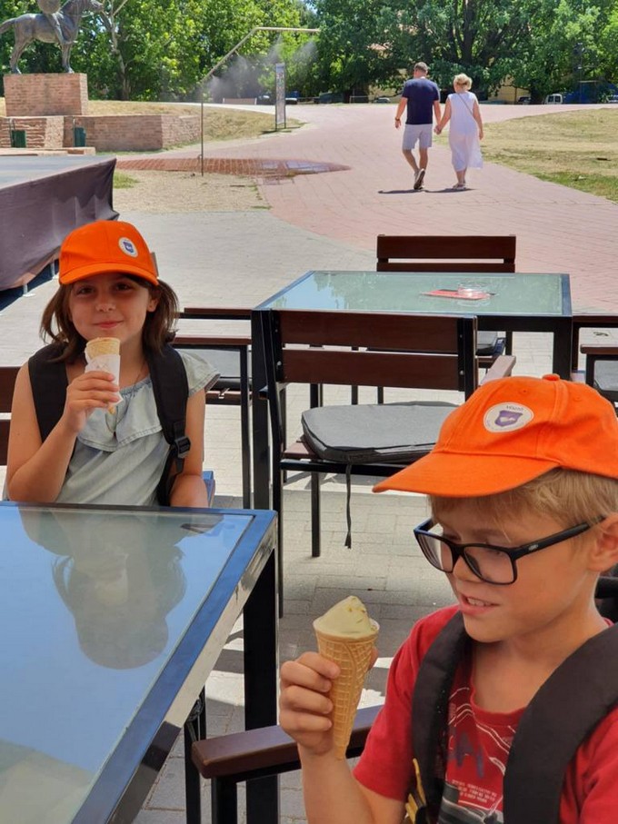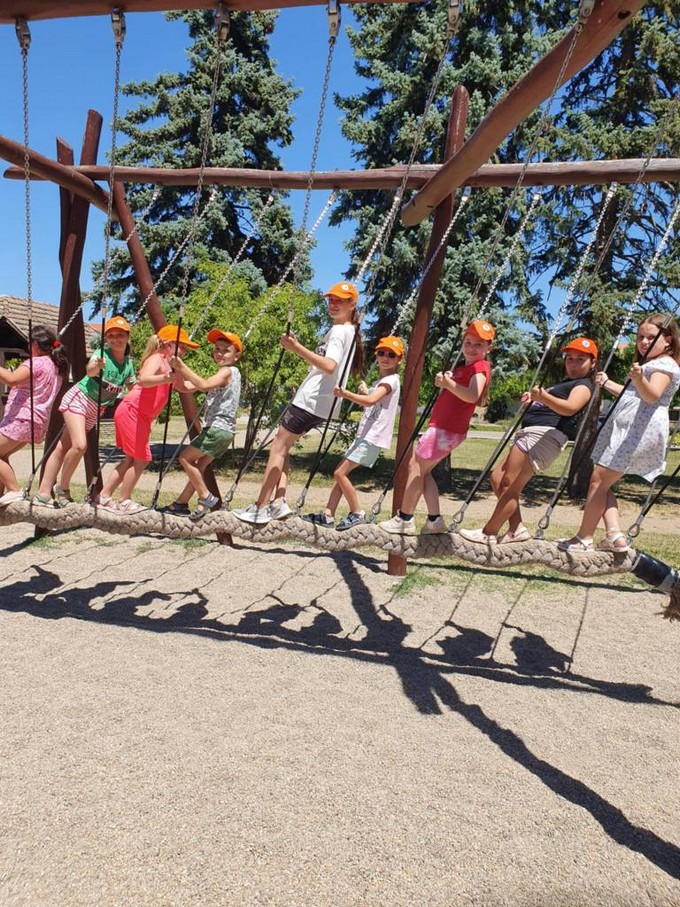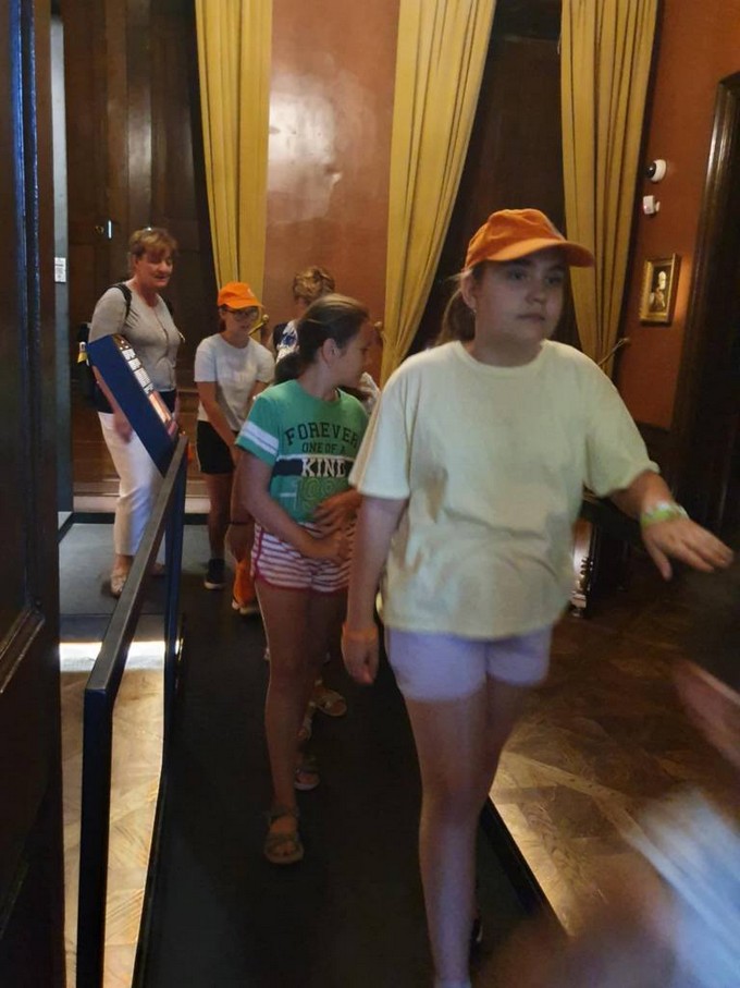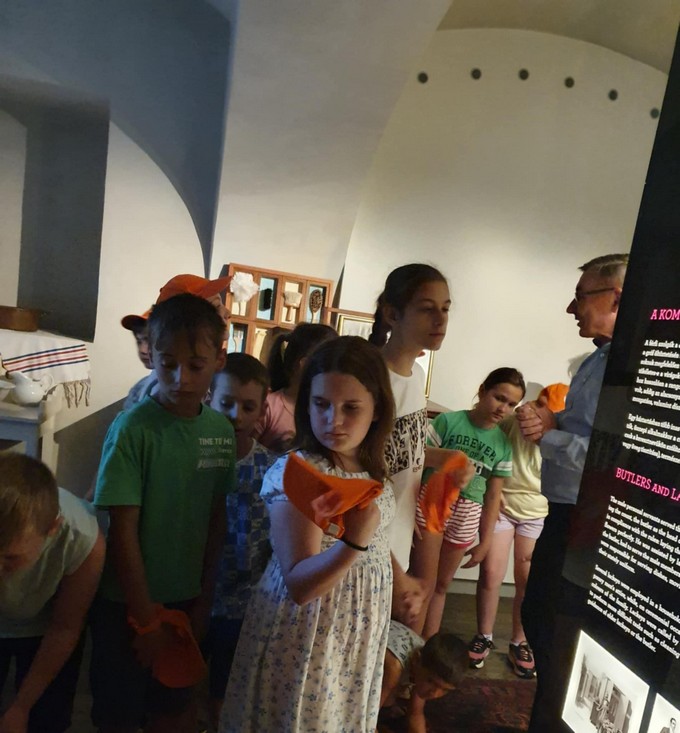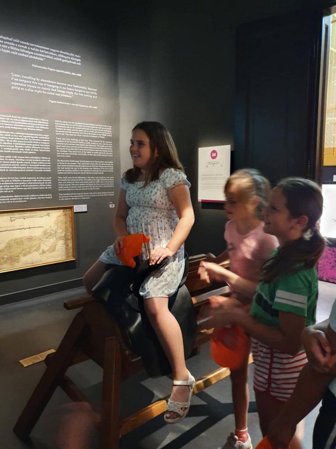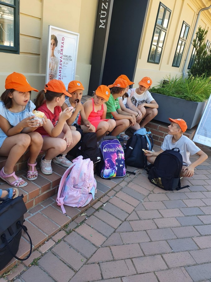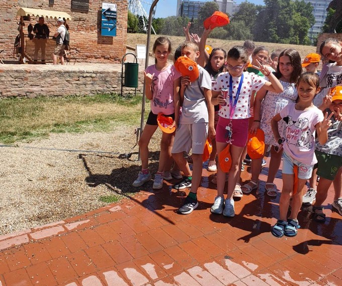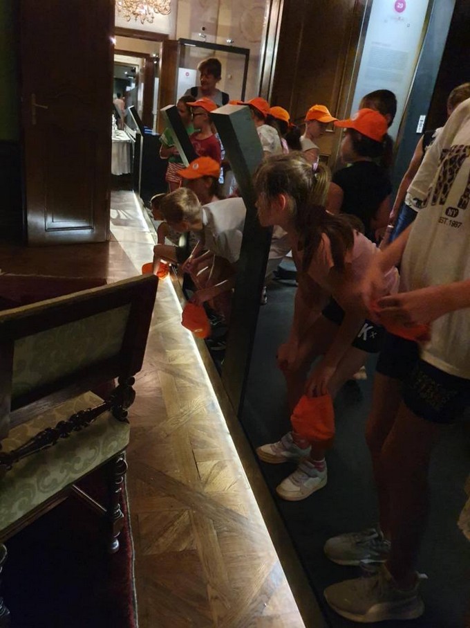 A mai nap ránk váró rekkenő hőség ellenére a Sakk tábor lelkes kis csapata továbbra is kitartó volt, úgyhogy reggel 7:30-kor már a vonatpótló autóbuszon ültünk egészen Kötegyánig. Onnan pedig vonattal utaztunk tovább Gyuláig. Kis séta és már meg is érkeztünk az Almásy-kastélyhoz. A tárlatvezető sok mindenre kiterjedő részletességgel beszélt a kastély történetéről, lakóiról, a személyzetről, azok feladatairól. Megismerhettük a régi világban itt élők mindennapi életét, szokásait, használati- illetve díszes, értékes tárgyait. Nagyszerű élményt nyújtottak az interaktív megoldások. A rögtönzött mini színjátszó társulatunk egy árnyékszínházat is elénk varázsolt és bemutatott egy lánykérést a nézők nagy örömére. Hazaindulás előtt jól esett egy fagyi a vár falainál. Az itt lévő párakapu lehűtött bennünket, így jó hangulatban eltöltöttünk egy kis időt a közeli játszótéren.