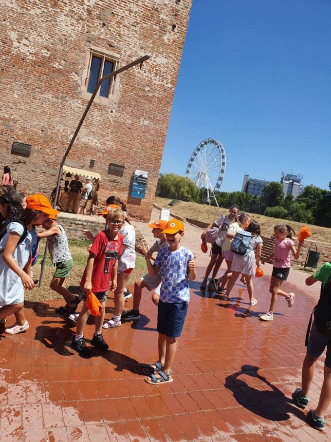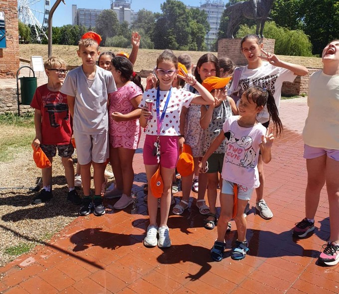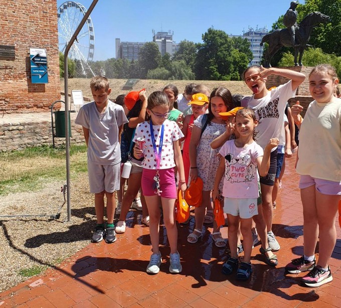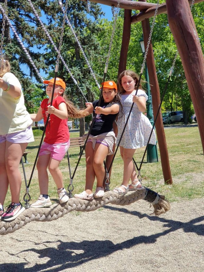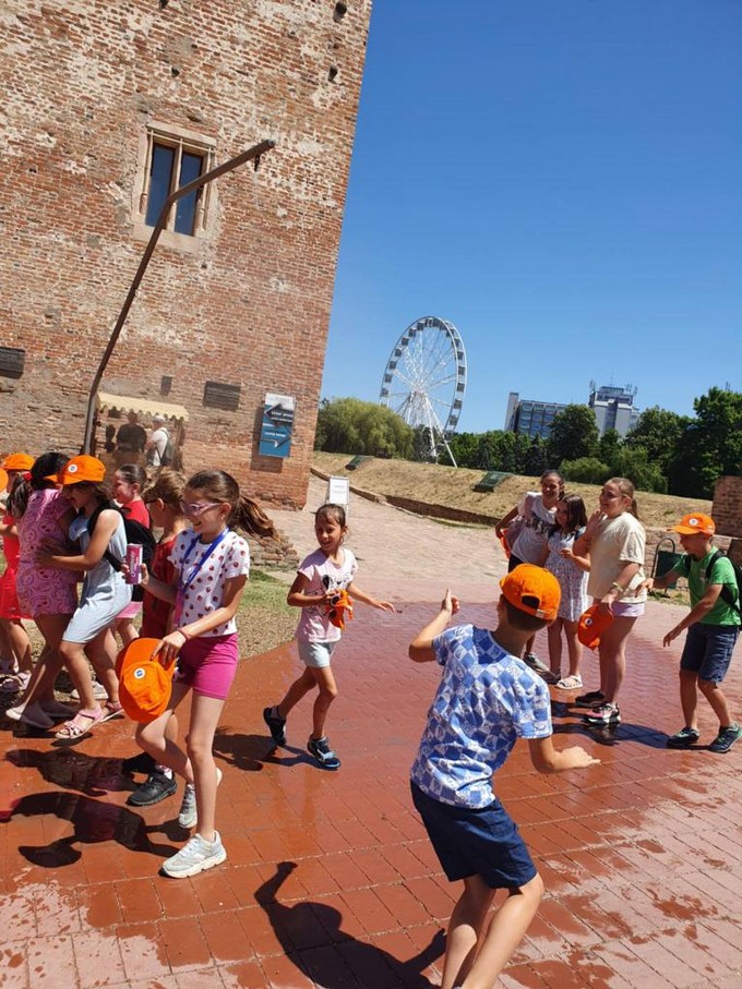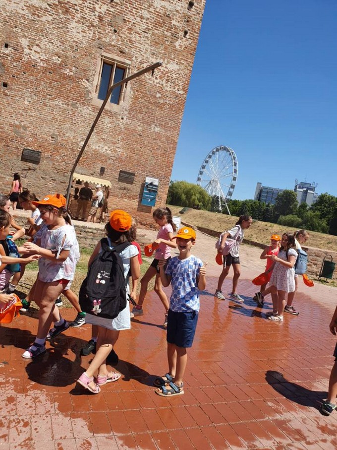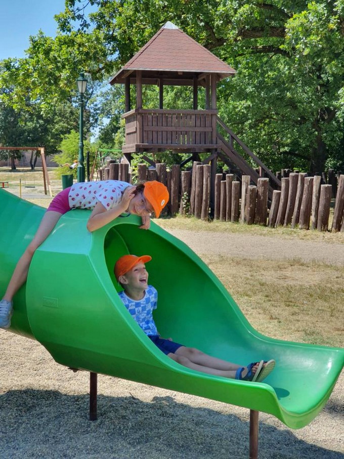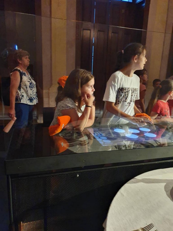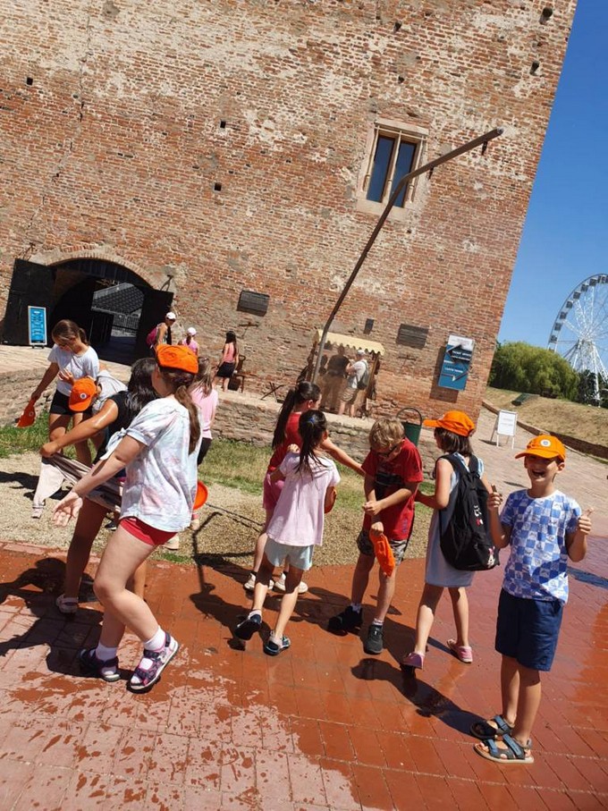 A mai nap ránk váró rekkenő hőség ellenére a Sakk tábor lelkes kis csapata továbbra is kitartó volt, úgyhogy reggel 7:30-kor már a vonatpótló autóbuszon ültünk egészen Kötegyánig. Onnan pedig vonattal utaztunk tovább Gyuláig. Kis séta és már meg is érkeztünk az Almásy-kastélyhoz. A tárlatvezető sok mindenre kiterjedő részletességgel beszélt a kastély történetéről, lakóiról, a személyzetről, azok feladatairól. Megismerhettük a régi világban itt élők mindennapi életét, szokásait, használati- illetve díszes, értékes tárgyait. Nagyszerű élményt nyújtottak az interaktív megoldások. A rögtönzött mini színjátszó társulatunk egy árnyékszínházat is elénk varázsolt és bemutatott egy lánykérést a nézők nagy örömére. Hazaindulás előtt jól esett egy fagyi a vár falainál. Az itt lévő párakapu lehűtött bennünket, így jó hangulatban eltöltöttünk egy kis időt a közeli játszótéren.