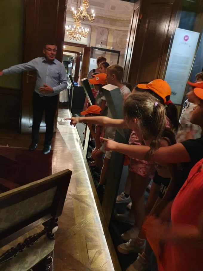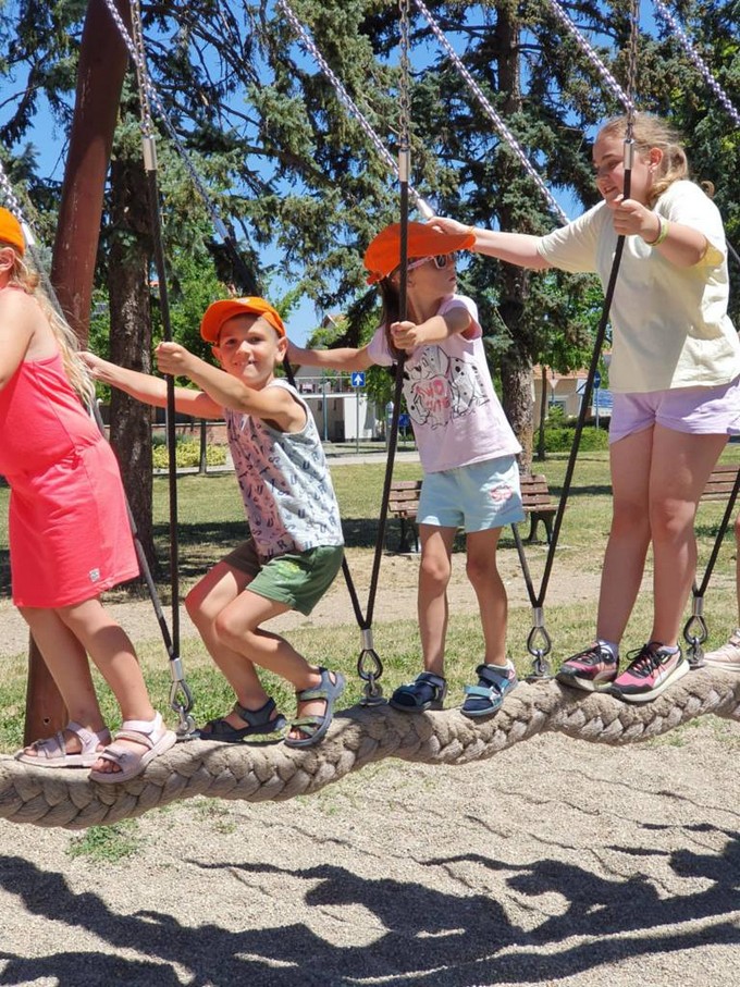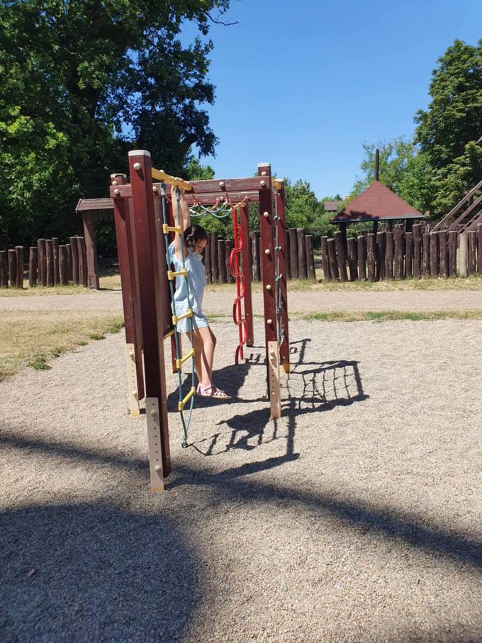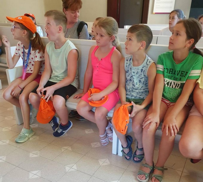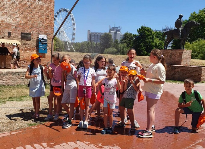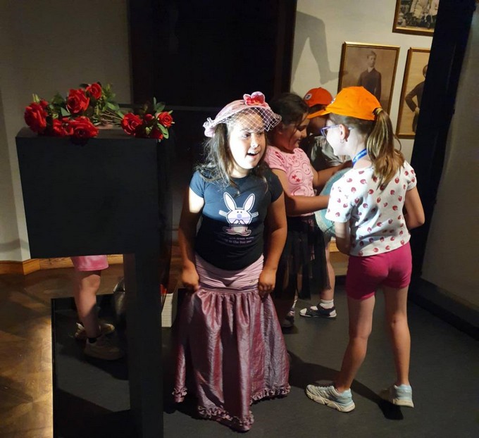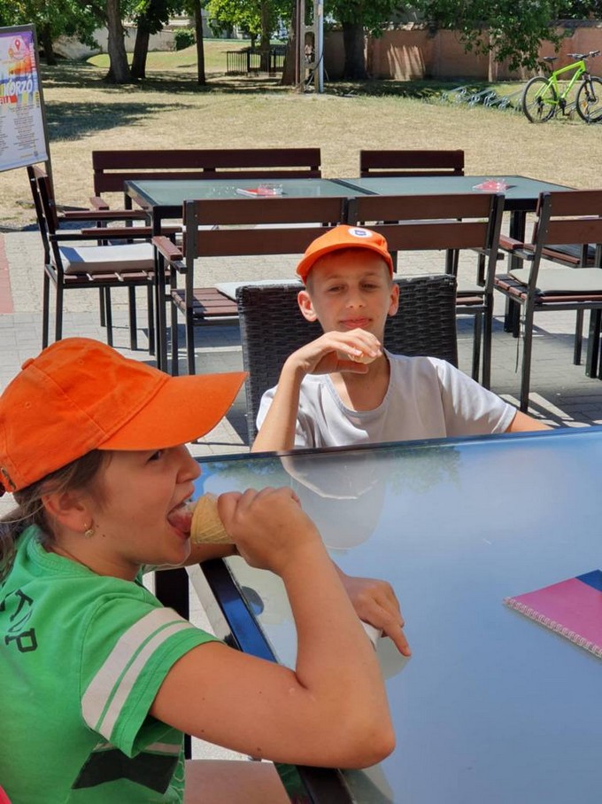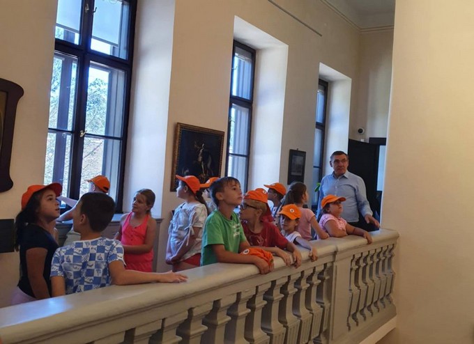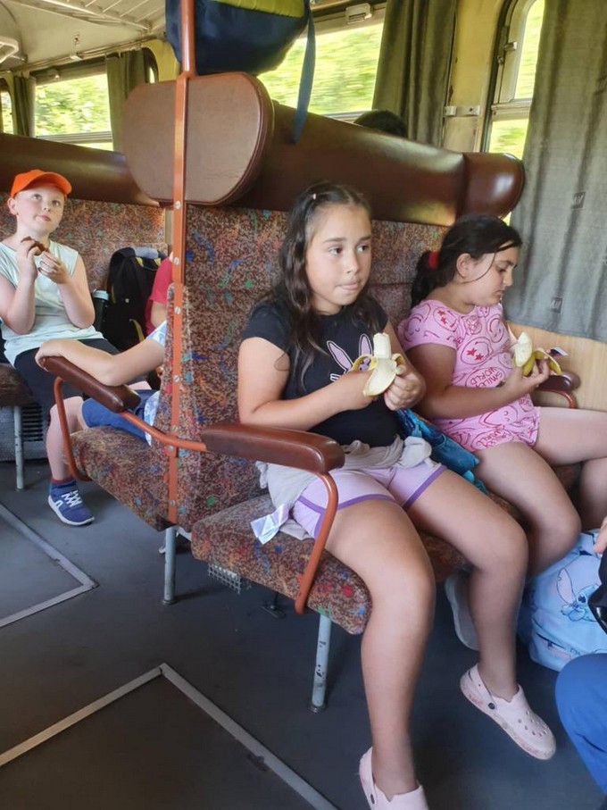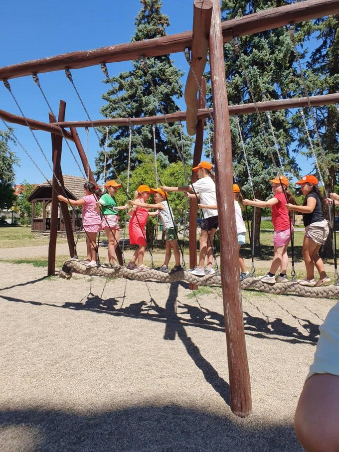 A mai nap ránk váró rekkenő hőség ellenére a Sakk tábor lelkes kis csapata továbbra is kitartó volt, úgyhogy reggel 7:30-kor már a vonatpótló autóbuszon ültünk egészen Kötegyánig. Onnan pedig vonattal utaztunk tovább Gyuláig. Kis séta és már meg is érkeztünk az Almásy-kastélyhoz. A tárlatvezető sok mindenre kiterjedő részletességgel beszélt a kastély történetéről, lakóiról, a személyzetről, azok feladatairól. Megismerhettük a régi világban itt élők mindennapi életét, szokásait, használati- illetve díszes, értékes tárgyait. Nagyszerű élményt nyújtottak az interaktív megoldások. A rögtönzött mini színjátszó társulatunk egy árnyékszínházat is elénk varázsolt és bemutatott egy lánykérést a nézők nagy örömére. Hazaindulás előtt jól esett egy fagyi a vár falainál. Az itt lévő párakapu lehűtött bennünket, így jó hangulatban eltöltöttünk egy kis időt a közeli játszótéren.