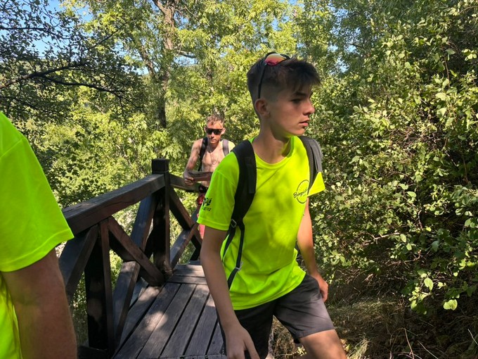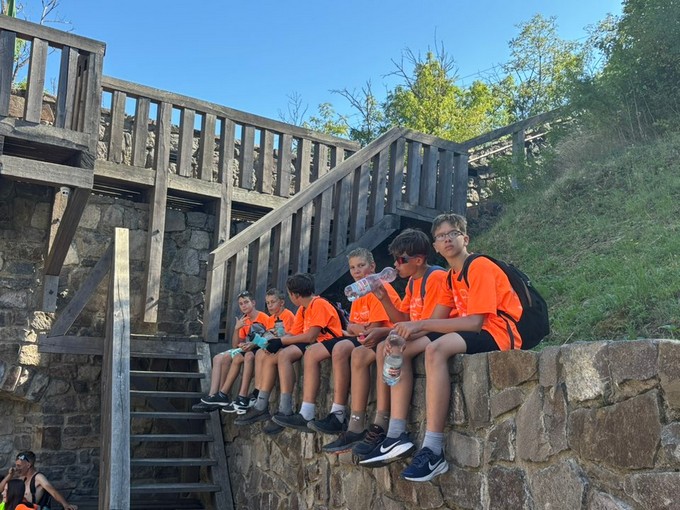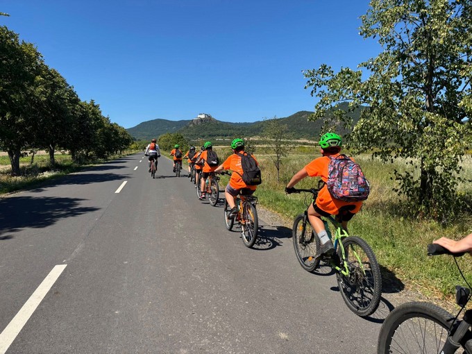 Pálháza Füzérradvány Füzér Pálháza Rostalló Pálháza 40 km Mai túránk egy körtúra a körtúrában volt, tele különleges élményekkel. Első állomásunk a nemrég felújított Füzérradványi Károlyi-kastély volt, ahol bepillantást nyertünk az 1940-es évek luxus kastélyszállójának világába. A kiállítás hangulata egyszerre idézte az angolszász kastélyok romantikáját, a vadászkastélyok sötét tónusait és a noir filmek világát ? mindezt izgalmas beszélő képekkel és egy nyomozós játékkal fűszerezve. A hatalmas kastélyparkban évszázados platánok és hársfák között sétálnunk igazi időutazás volt! Innen tekertünk tovább fel Füzér várához, amely az ország egyik legszebb fekvésű vára. A Reg-ÉLŐ VÁRtekergő térkép segítségével fedeztük fel a 4 szintet, pecséteket gyűjtöttünk és közben megismertük a vár történelmét, valamint azt, hogyan élték meg a fénykor napjait a várban, kik voltak a birtokosai igazi kaland volt a múltban. Visszaérve Pálházára nem álltunk meg: a vacsora előtt még végig kerekeztünk a Kemence-patak menti erdei úton egészen Rostallóig. Hazafelé a Kőkapunál álltunk meg, ahol a Vadászkastély, az Áfonyás-tó és a magyar történelem ismert alakjait megörökítő szabadtéri szoborpark tették teljessé napunkat. A mai nap mérlege: amennyit fölfele izzadva keményen tekertünk, ugyanannyit gurultunk boldogan suhanva lefelé este aztán így nem kellett senkit sem altatni.