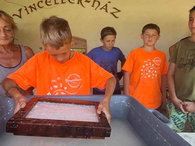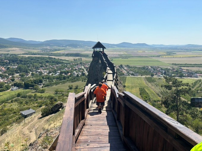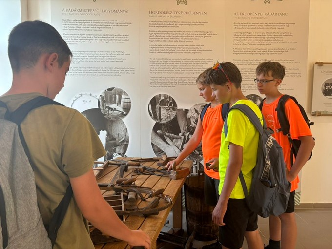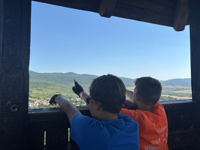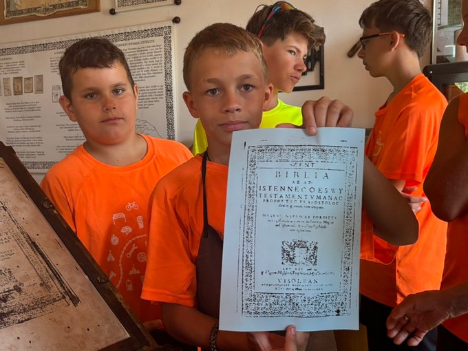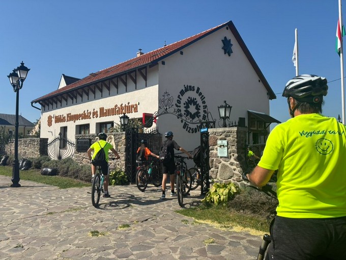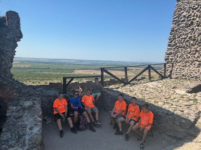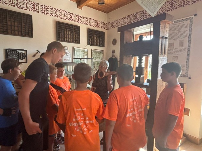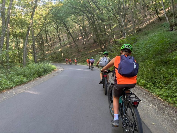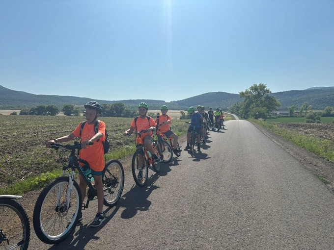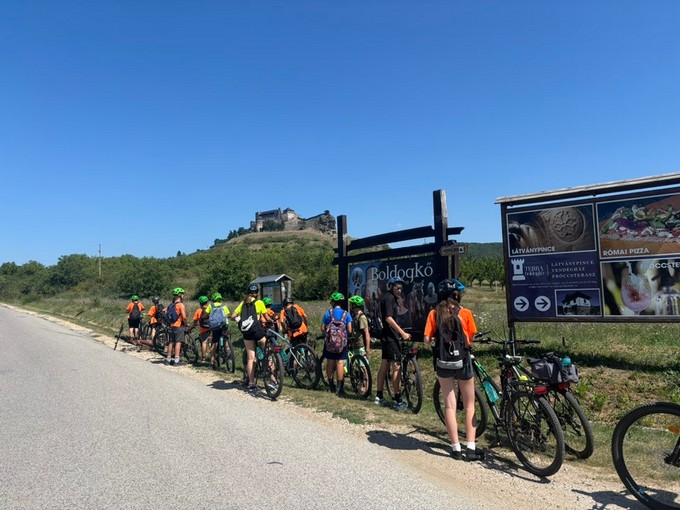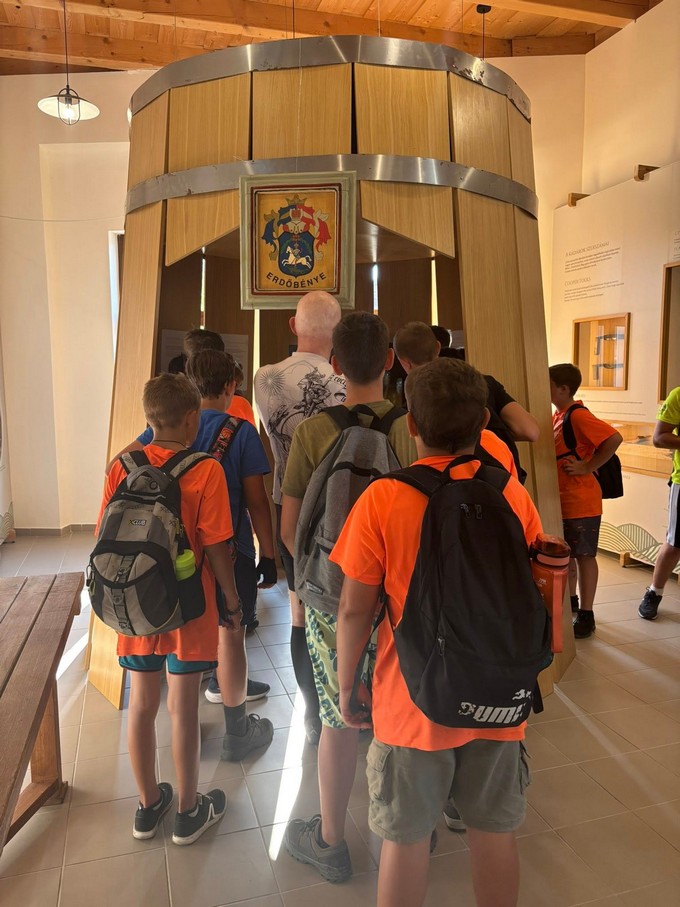 Fony - Vizsoly - Boldogkőváralja - Aranyosi-völgy - Erdőbénye - Bodrogkisfalud 50 km Miután bereggeliztünk az előző nap sütött kalácsból, várt minket az egyik legszebb útvonal! Fonyból hosszú lejtőkön suhanva és kemény emelkedőkön de már kevésbé küzdve jutottunk el Vizsolyba, ahol az Árpád-kori templom freskói és az 1590-ben nyomtatott első teljes magyar nyelvű Vizsolyi Biblia egy eredeti példánya várt ránk. A Nyomtatástörténti Kiállítás megtekintése után minden kis nyomdász hazavihette a nyomdászok műhelyében sajátkezűleg készített Biblia lap nyomatát is - igazi időutazás volt! Ezek után vár ránk a Zempléni-hegység lábainál fekvő Boldogkő grandiózus vára, a barackfák és sudár feketefenyők öleléséből magasba emelkedő, sziklára épített romantikus lovagvár különleges környezetben, újjáépített palotaszárnnyal és gyönyörű panorámával, ahová szintén hosszas emelkedőkön tekertünk, de a nagy meleg ellenére is ezt már egész jól bírtuk. Innen az Aranyosi-völgyben emelkedünk ismét felfelé, de az árnyas, enyhén, de folyamatosan emelkedő út már meg se kottyant edzett lábainknak. Erdőbényén egy igazi kádárházat láttunk, ahol kiderült, hogy is készül a boroshordó, és a híres erdőbényei kádártánccal is megismerkedtünk. Az Illés Pince történelmi labirintusa kellemes hűvössel frissített fel minket, mielőtt nekivágtunk az utolsó 13 km-nek. Bodrogkisfaludban fejedelmi vacsora és szívélyes fogadtatás várt bennünket - a Polgármester úr és a falu mindig különleges szeretettel köszönti a bringásokat. Itt tartottuk a táborzáró estét is vidám hangulatban, bár egy kis szomorúsággal a szívünkben, hogy ennek a csodás kalandnak a végéhez értünk.