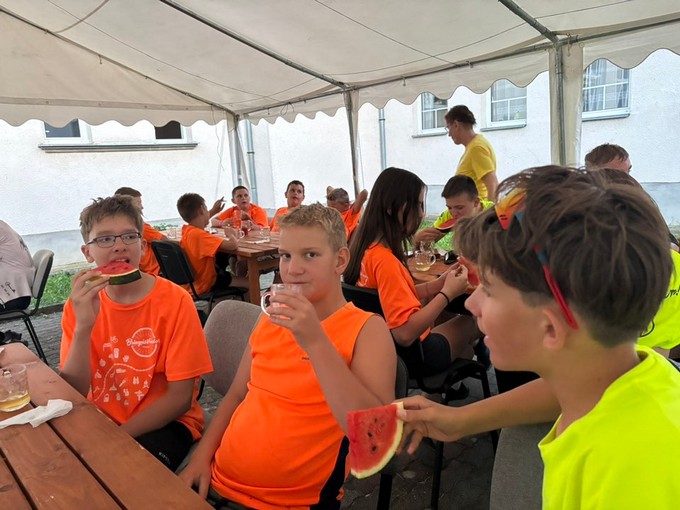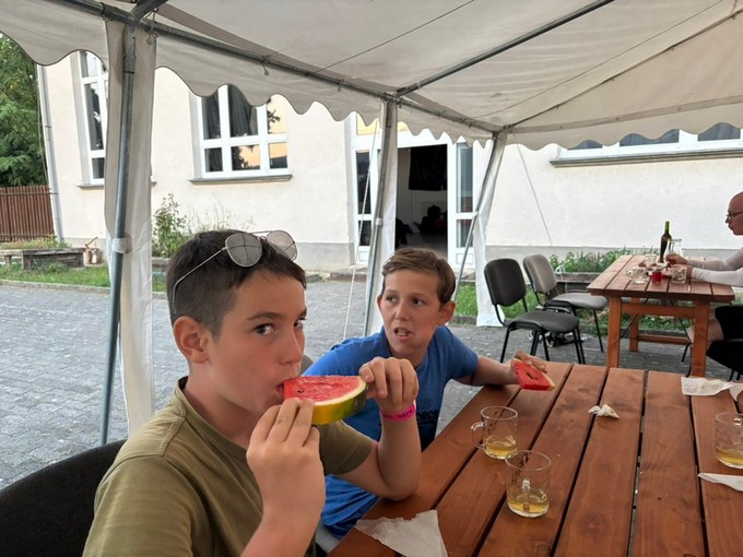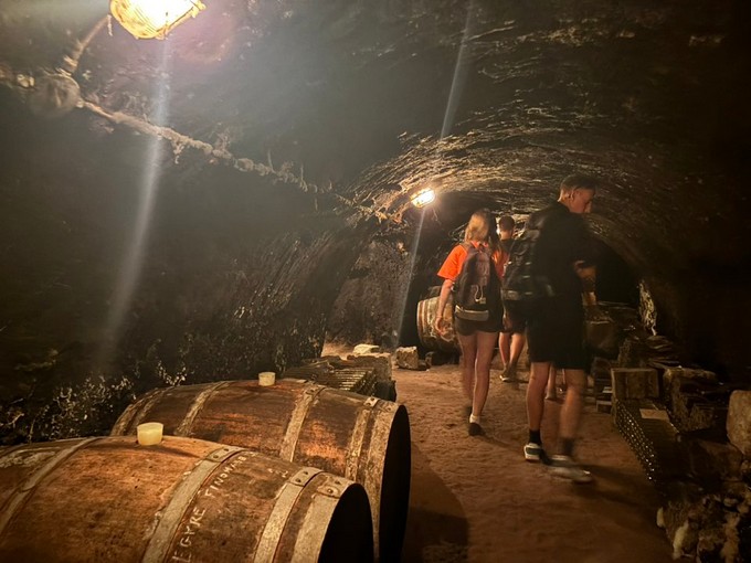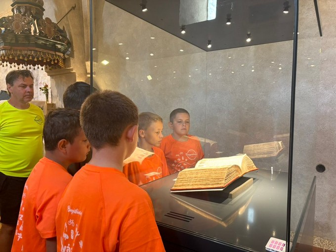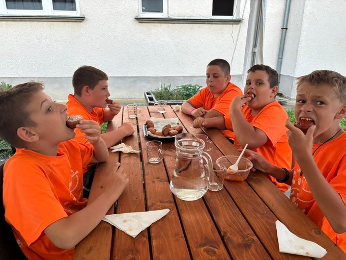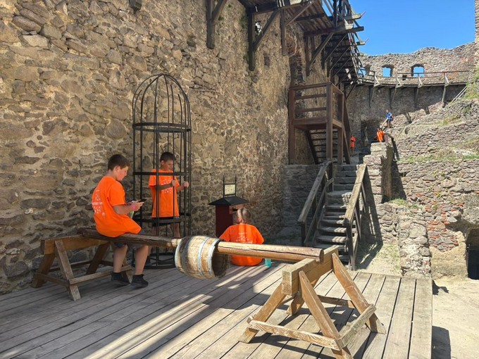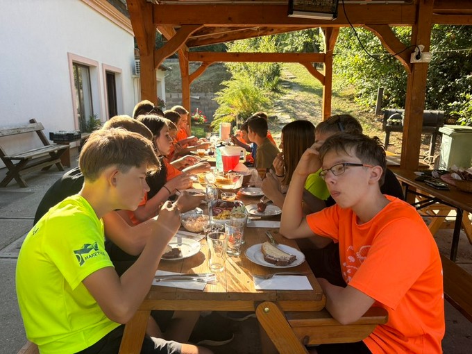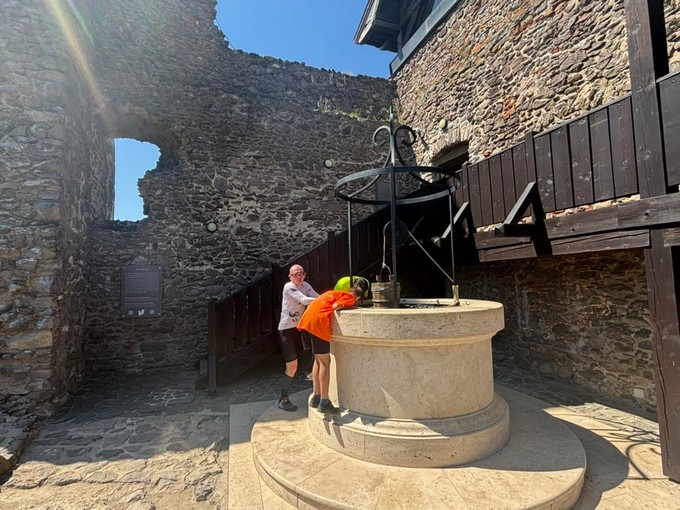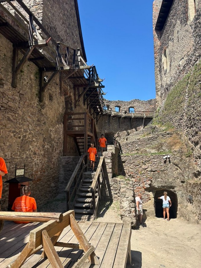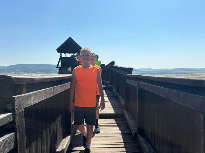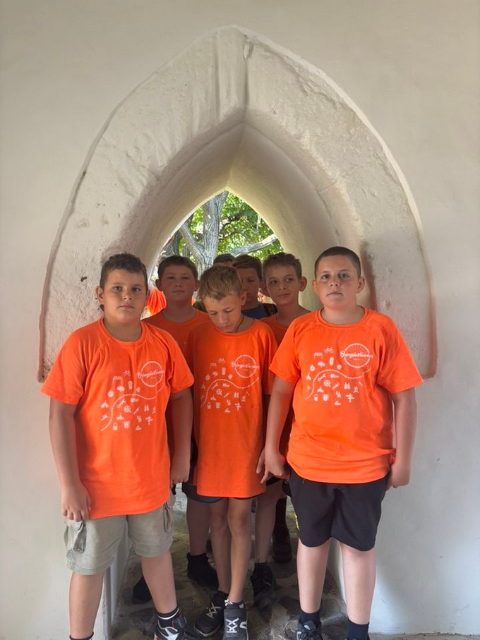 Fony - Vizsoly - Boldogkőváralja - Aranyosi-völgy - Erdőbénye - Bodrogkisfalud 50 km Miután bereggeliztünk az előző nap sütött kalácsból, várt minket az egyik legszebb útvonal! Fonyból hosszú lejtőkön suhanva és kemény emelkedőkön de már kevésbé küzdve jutottunk el Vizsolyba, ahol az Árpád-kori templom freskói és az 1590-ben nyomtatott első teljes magyar nyelvű Vizsolyi Biblia egy eredeti példánya várt ránk. A Nyomtatástörténti Kiállítás megtekintése után minden kis nyomdász hazavihette a nyomdászok műhelyében sajátkezűleg készített Biblia lap nyomatát is - igazi időutazás volt! Ezek után vár ránk a Zempléni-hegység lábainál fekvő Boldogkő grandiózus vára, a barackfák és sudár feketefenyők öleléséből magasba emelkedő, sziklára épített romantikus lovagvár különleges környezetben, újjáépített palotaszárnnyal és gyönyörű panorámával, ahová szintén hosszas emelkedőkön tekertünk, de a nagy meleg ellenére is ezt már egész jól bírtuk. Innen az Aranyosi-völgyben emelkedünk ismét felfelé, de az árnyas, enyhén, de folyamatosan emelkedő út már meg se kottyant edzett lábainknak. Erdőbényén egy igazi kádárházat láttunk, ahol kiderült, hogy is készül a boroshordó, és a híres erdőbényei kádártánccal is megismerkedtünk. Az Illés Pince történelmi labirintusa kellemes hűvössel frissített fel minket, mielőtt nekivágtunk az utolsó 13 km-nek. Bodrogkisfaludban fejedelmi vacsora és szívélyes fogadtatás várt bennünket - a Polgármester úr és a falu mindig különleges szeretettel köszönti a bringásokat. Itt tartottuk a táborzáró estét is vidám hangulatban, bár egy kis szomorúsággal a szívünkben, hogy ennek a csodás kalandnak a végéhez értünk.