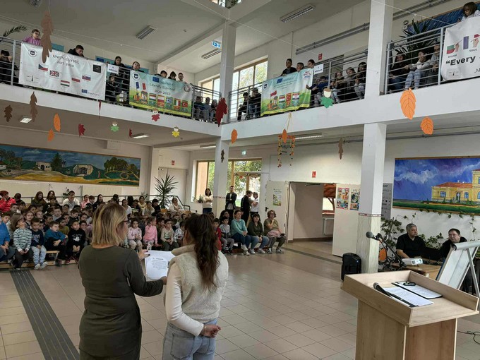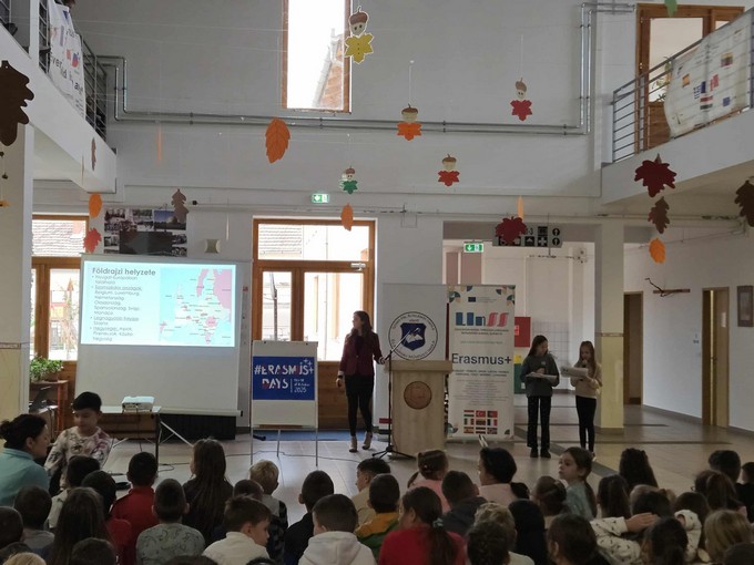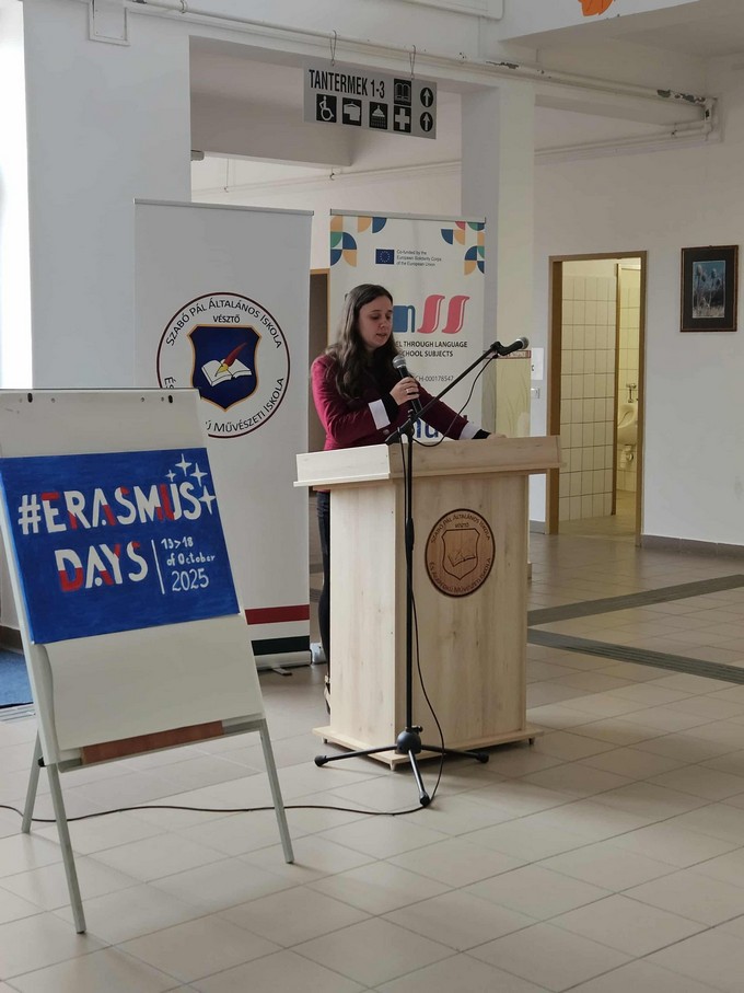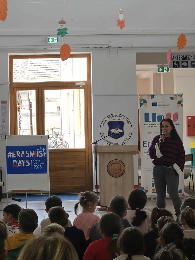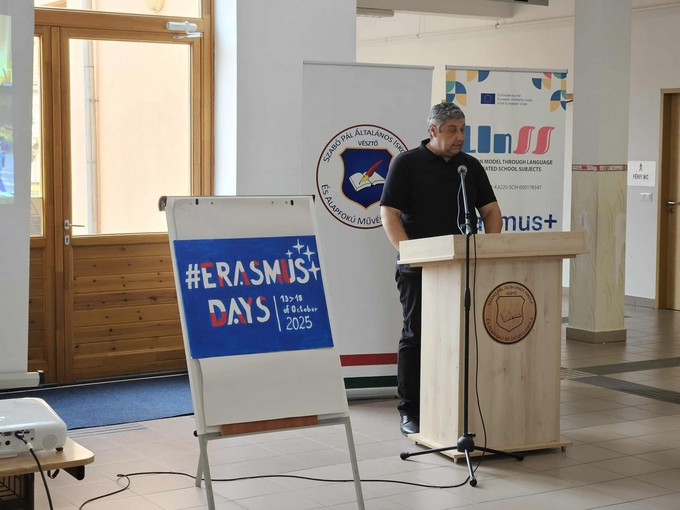 2025. október 18 - án került megrendezésre a Szabó Pál Általános Iskola és Alapfokú Művészeti Iskolában az Erasmus - Day, amely egy híres nemzetközi kezdeményezés. A nap folyamán színes programokon keresztül ismerkedhették meg a tanulók az Európai Unió országaival, értékeivel. Az eseményt Orbán István főigazgató úr nyitotta meg, beszédében hangsúlyozta az iskolában zajló Erasmus programokat és az idegen nyelv oktatás fontosságát. Szabó Tamás és kollégái valamint a Művészeti Iskola növendékeinek előadásban hallgathattuk meg az Örömódát valamint A zene az kell című dalt. A felső évfolyamok bemutatói által megismerkedhettünk az Európai Unió országaival, nevezetességeivel, az alsósok pedig angol nyelvű versekkel és dalokkal színesítették a programot. Ezt követően iskolánk tanárai és volt diákjai beszéltek saját élményeikről, tapasztalataikról, amelyeket a mobilitások során gyűjtöttek. A következő blokkban több interaktív műhelyben zajlottak a programok, voltak kreatív foglalkozások, sport tevékenység, kultúra és idegen nyelvi sarok, mindezek hozzájárultak ahhoz, hogy a tanulók több információt szerezzenek az európai kultúráról, az országok történelméről. Az esemény zárásaként együtt énekeltük az Örömódát és megtekinthettük a nap folyamán elkészített csodálatos alkotásokat. Köszönjük szépen mindenki hozzájárulását, segítséget! Reméljük, hogy egy igazán izgalmas és tartalmas napra emlékezhetünk vissza! Képek a felső tagozatból
