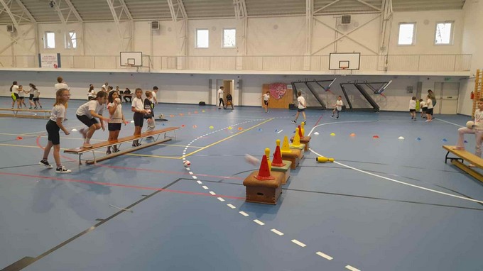 Hat állomás, forgószínpadszerű váltások, sportági előkészítő játékok és vidám, játékos feladatok várták a 3-4 osztályos gyerekeket a Sportcsarnokban