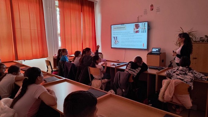 2025. november 17-21. között valósult meg intézményünkben az Egészséges táplálkozás hete, melynek célja az egészséges életmód népszerűsítése, különösen a tudatos táplálkozás és a megfelelő folyadékbevitel fontosságának hangsúlyozására. Aktív Iskolaként a hét minden napát Mozgásban az egészség - aktív szünettel kezdtük, melynek során minden diák kedvére kapcsolódhatott be a Just Dance - be. Hétfőn Kövér Éva, a környezetvédelmi munkaközösség vezetője ismertette a hét programjait és felhívta a figyelmet a vízivás napján a megfelelő folyadékfogyasztás fontosságára. Szerdán 9 órától iskolánk egykori diákja, Szabó Imre tartott előadást Mozgás + tudatos táplálkozás EGÉSZSÉG címmel a felső tagozatos diákoknak. 11 órától Tarr Erzsébet a cukorbetegség tüneteire hívta fel a figyelmet és arra, hogyan lehet teljes életet élni cukorbetegen. 15:30 - tól iskolánk pedagógusa, Dugmonits Csilla Mária a szülők számára adott néhány tanácsot EGÉSZSÉGES TÁPLÁLKOZÁS GYERMEKEINKÉRT ? amit otthon tehetünk című előadásában. A csütörtök is rejtegetett érdekes témákat. Szabó Katalin főigazgató ? helyettes, az Aktív Iskola koordinátori csapat vezetője, és Turbucz János rendszergazda a MEGFELELŐ TÁPLÁLKOZÁS, MEGFELELŐ ALVÁS, ENERGIA AZ EGÉSZSÉGHEZ témájú tanórán a kalóriaszámláló és alvást támogató applikációkat mutatták be a diákoknak. A hét során a sokrétű szemléletformáló eseményeknek köszönhetően minden résztvevő számára világossá vált, hogy az egészséges táplálkozás, a megfelelő folyadékfogyasztás, a túlzottan feldolgozott élelmiszerek kerülése, és a megfelelő alvás a hosszú távú egészség megőrzésének kulcsa.