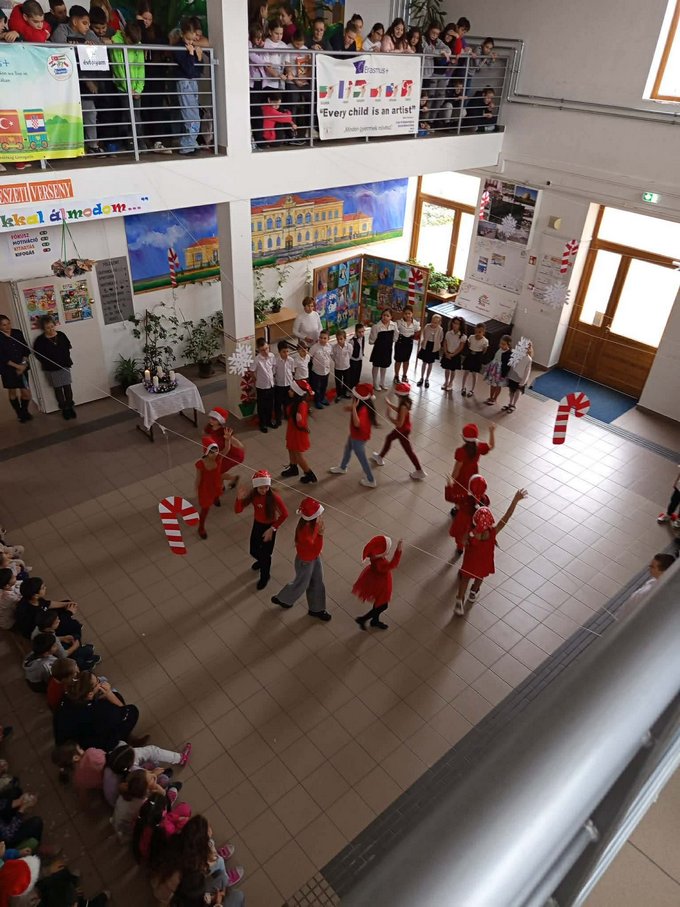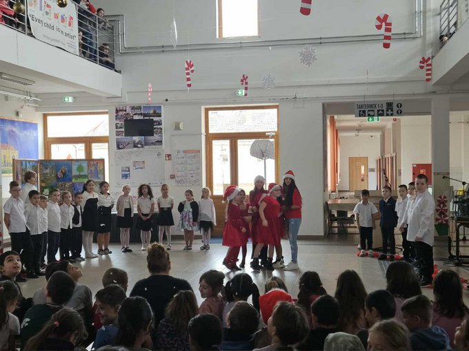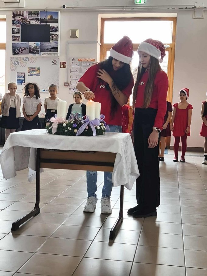 2025. december 5 - én iskolánk aulájában meggyújtottuk az adventi koszorún a második gyertyát, mely a reményt szimbolizálja. A remény éltető erő, amely segít meglátni a jót és megnyitja lelkünket arra, hogy elhiggyük: a változás lehetséges. Bátorít, hogy merjünk újrakezdeni ott is, ahol már feladtuk volna. A remény különleges ajándék: erős láng, amely a sötétségből a fény felé vezet. Ünnepi műsor keretében a 2. a; a 2. b, valamint a 6. b osztály tanulói zenés - verses összeállítással kedveskedtek a szülőknek és diáktársaiknak. Megkülönböztetett tisztelettel köszöntöttük körünkben Oláh Attiláné Maronyai Tündét és fiát, akik Gyermelyről követték nyomon iskolánk tanulóinak életét. Gyermekvédelmi szakemberként tudják, hogy milyen fontos a jókor és jól nyújtott segítő kéz. Adományuknak köszönhetően húsznál is több családhoz jutott el a remény üzenete, nem csak szavakban, hanem tettekben is. Hálásan köszönjük önzetlen támogatásukat. 2025. december 5 - én a gyermekek felemelő műsora, a közösen meggyújtott gyertya fénye és a jótékony cselekedet egyszerre tudta beragyogni iskolánk közösségét.
