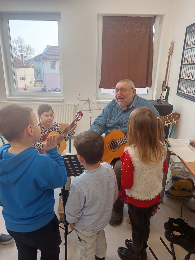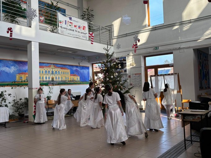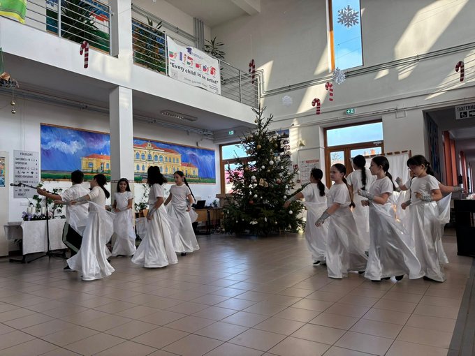 2025. december 18-án délután került sor a Sulikukucskáló decemberi programjára, ahol a Művészeti Iskolánk mutatkozott be: a leendő első osztályosok és szüleik egy kis ízelítőt kaptak az ott működő tanszakok életéből, valamint bepillantást nyerhettek a Boldogiskola Programba Szegediné Kutasi Emma vezetésével. Először a 4.osztály tanulói kedveskedtek egy karácsonyi jelenettel, majd a társastánc tanszak növendékei varázsoltak el bennünket angyali táncukkal. A zenei tanszakon Horváth Elek művésztanár és egyik tanítványának gitár játékában gyönyörködhettünk. Ezután Emma néni segítségével a pasztell kréta használatával is megismerkedtünk, majd egy kis mozgásos játékkal felfrissítettük az izmainkat is a Boldogiskola Programjának részeként, amit nagyon élveztek a gyerekek. A közelgő ünnep alkalmából, mézeskaláccsal, süteményekkel és üdítővel vendégeltük meg az érdeklődőket. A délután jó hangulatban telt el, bízunk benne, hogy a következő Sulikukucskáló programunkat is megtisztelik jelenlétükkel! Legyen az ünnep csendes, mint szíved dobbanása, Legyen békés, mint a hó hullása. Legyen szép, mint gyertya ragyogása, és vidám, mint gyermek kacagása!