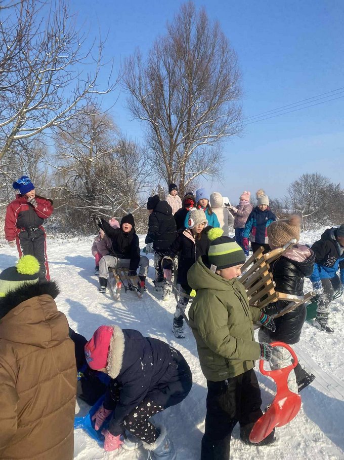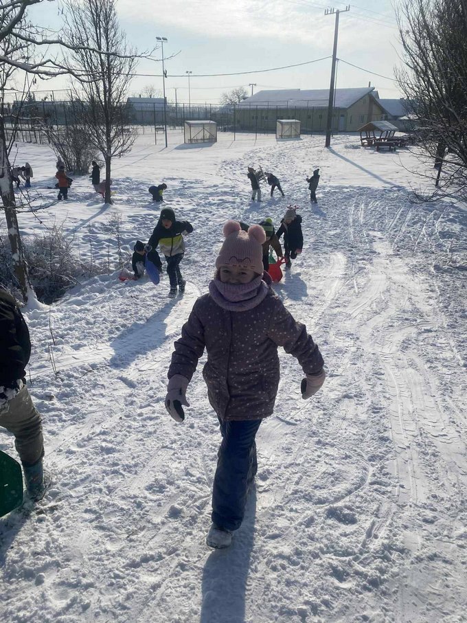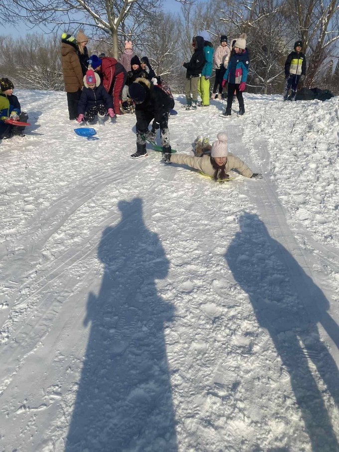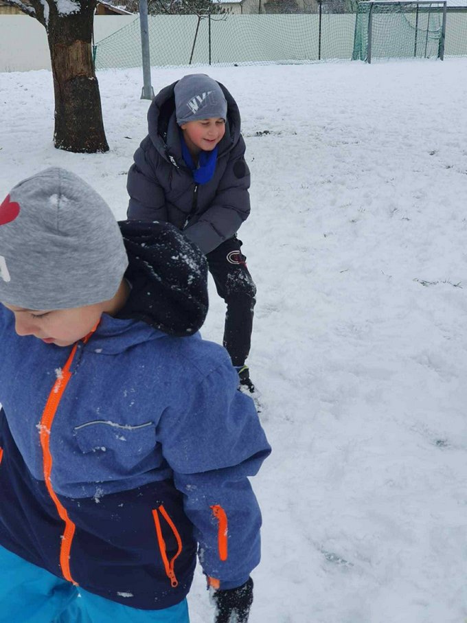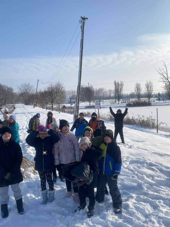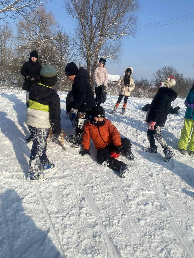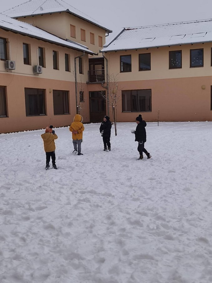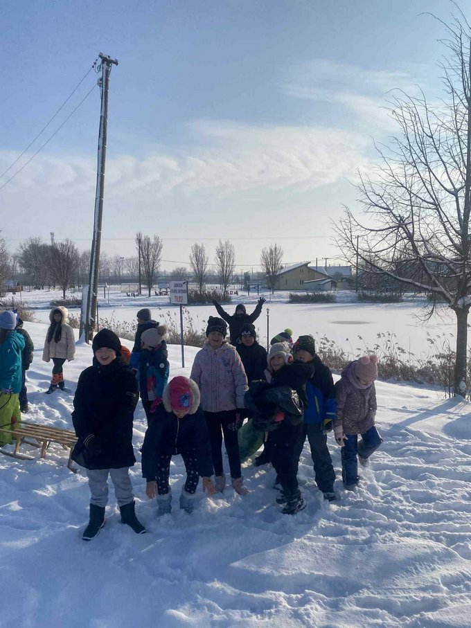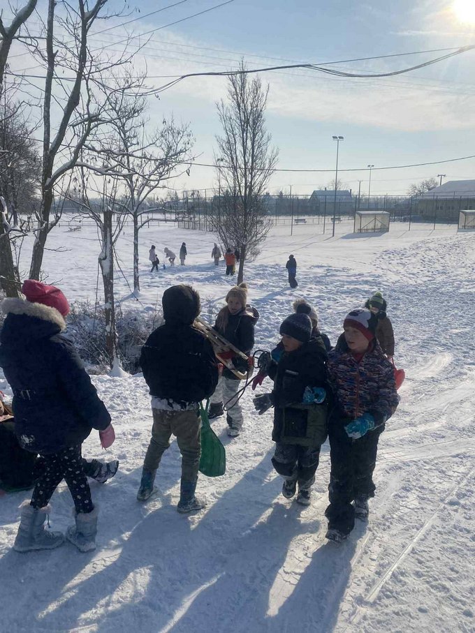 A testnevelés óra ezúttal a szabadban zajlott, ahol a mozgás öröme találkozott a hó adta élményekkel.