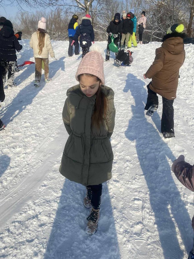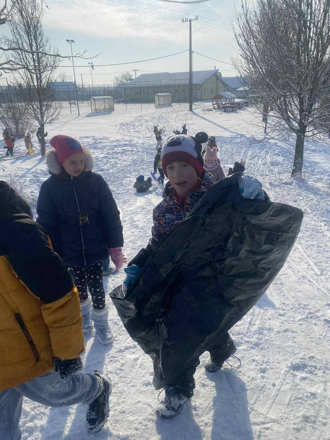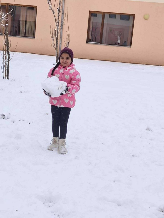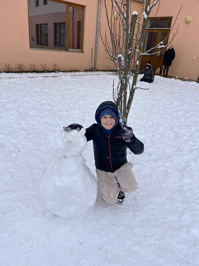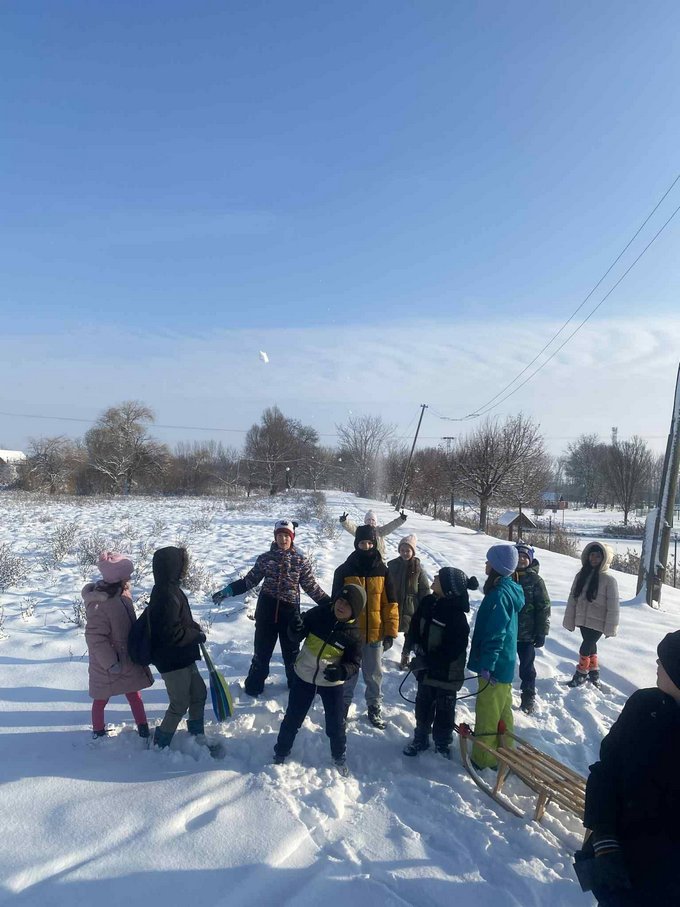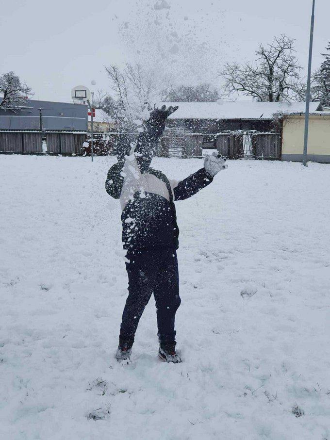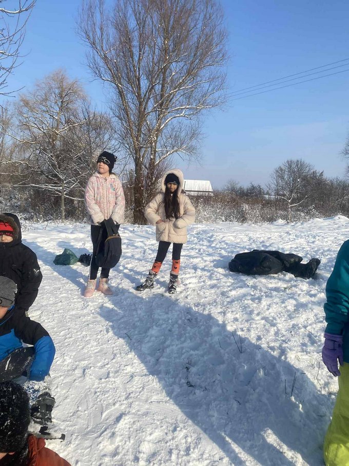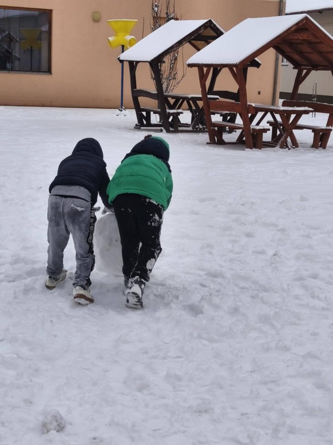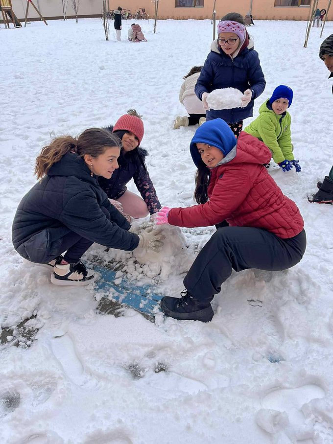 A testnevelés óra ezúttal a szabadban zajlott, ahol a mozgás öröme találkozott a hó adta élményekkel.