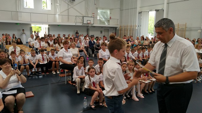 Ismét eredményes és sikerekben gazdag tanévet zártunk. - ezzel a gondolattal kezdte Orbán István igazgató úr tanévzáró beszédét. Iskolánk kreatív munkaközössége által kiírt oklevéltervező pályázat legjobbnak ítélt okleveleit és könyvjutalmat kapott 43 tanuló kitűnő tanulmányi eredményéért és példamutató magatartásáért. Ezt követően Forrásné Krajcsó Erzsébet, a Vésztői Szabó Pál Általános Iskola és Alapfokú Művészeti Iskola Tehetséges Diákjaiért Alapítvány elnöke alapítványi jutalmakat adott át azon tanulóknak, akik versenyen, vetélkedőn eredményesen képviselték iskolánkat a 2022-2023. tanévben.