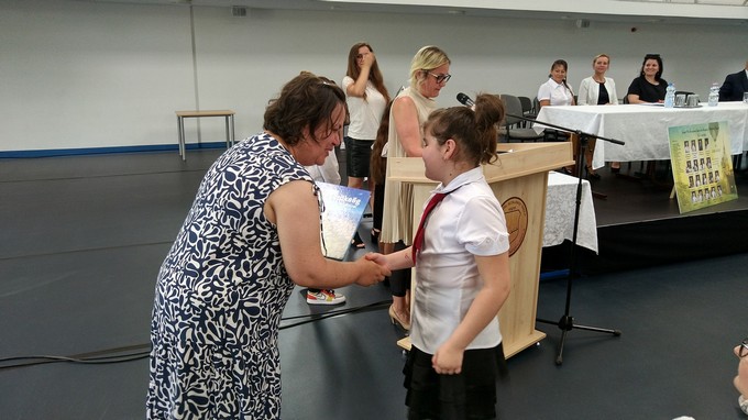 Gratulálunk Tóth Réka 7. a osztályos tanulónak, aki Csősz Ferenctől, a Báthori István Gimnázium vésztői tagintézményének vezetőjétől 5.000 forintos könyvutalványt vehetett át irodalom iránti elhivatottsága, e területen elért kiemelkedő eredményeinek jutalmául.