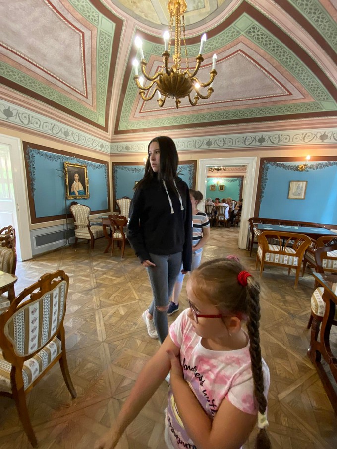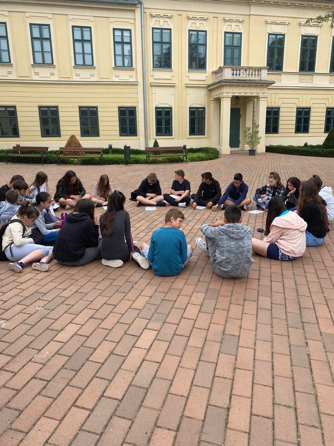 A drámatábor harmadik napján Gyulát vettük célba. Az Almásy kastély parkjában tartott irodalomterápiás foglalkozáson ezúttal a Szeptember végén című vers került elő. A csoport máris sokkal nyitottabban és felszabadultan állt a feladatokhoz, a kohézió erősödött, új barátságok alakultak, s régiek erősödtek tovább. Petőfi halhatatlan szerelmét, s a koltói kastélyban töltött nászútját felidézve indultunk el a múzeumpedagógus által vezetett kastélybarangolásra. Megismerkedtünk a cselédség és az úri társaság mindennapjaival, rácsodálkoztunk az interaktív megoldások varázslatára is. Ebédünket ezúttal a Bols étterem biztosította, akik nemcsak a barátságos fogadtatással, de a korlátlanul fogyasztható pizzával és jeges limonádéval is a szívünkbe lopták magukat. A Százéves cukrászdában elfogyasztott fagylalt, s a XIX.századot idéző belső termekben tett látogatás megkoronázta a programot. Még egy könnyű városi séta belefért a busz indulása előtt, de bizony ezzel el is fáradtunk: a hazautat már többen végigszundikálták. Holnap újult erővel következik a folytatás.