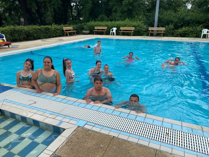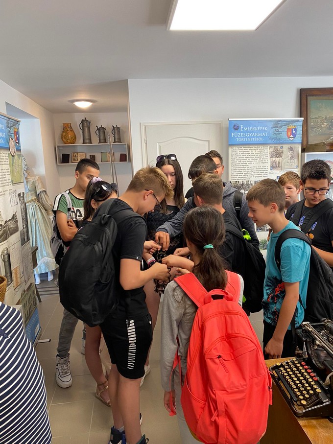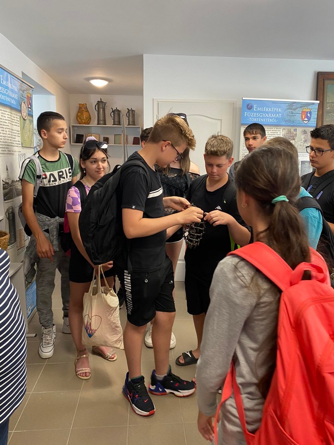 A drámatábor negyedik napján Füzesgyarmatra utaztunk, ahol a délelőttöt kultúrális sétával töltöttük. Elsőként a helytörténeti múzeumot látogattuk meg, ahol Klári néni tartott nekünk érdekes előadást, ahol Petőfin kívül Jókai Mór és Arany János füzesgyarmati kötődéséről is hallottunk. Az itt található XIX. századi lakcímösszeírási jegyzékben sokan felfedezték névrokonaikat. Ezt követően a tűzoltómúzeum országosan egyedülálló gyűjteményét tekintettük meg, s a tűzoltó szakma nehézségeiről és szépségeiről tudtunk meg érdekes ismereteket. A Szitás Erzsébet képtárban a festőnő nehéz útját, szerteágazó művészeti tevékenységét néztük meg, illetve az általa tervezett jelmezek rajzait is láthattuk, melyek a János vitéz színpadi változatához készültek. A séta zárásaként a Macimúzeum 1000-nél több maciját csodáltuk. Az ebédet ezúttal a strandétteremben fogyasztottuk el, majd a délután folyamán strandolásra került sor. A társaság ismét kellemesen elfáradva tért haza. Holnap a Dancka horgásztón zárul a tábor programja.