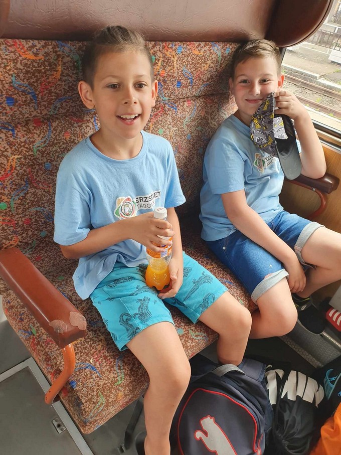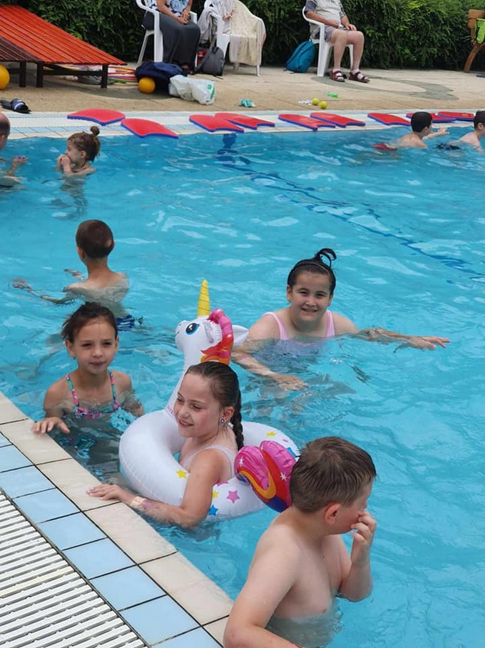 Nyári napközis Erzsébet tábor 2023. július 7. (péntek). Az Erzsébet tábor utolsó napját kicsit fáradtan, de annál lelkesebben kezdtük. A mai nap programja strandolás volt a Kastélypark Fürdőben. A reggeli elfogyasztása után kényelmesen kisétáltunk a vasútállomásra, ahonnan 9 óra 5 perckor indult a vonatunk Füzesgyarmatra. Az időjárás megpróbált bennünket elijeszteni, de ez ma sem sikerült. Végig az járt az eszünkben: ?Ha végre itt a nyár és meleg az idő, az ember strandra jár, mert azért van itt ő.? Sokunk számára ez volt az idei első strandolás, ezért már nagyon izgatottak voltunk. A fürdőben tiszta szép környezet, hívogató medence várt bennünket. A tízórai elfogyasztása után hosszú pancsolás következett. Még a legbátortalanabbak is felszabadultan lubickoltak a vízben. Rövid szünet következett, s ez alatt megettük a finom szendvicsebédünket. Nem sokáig pihentünk, mert alig vártuk, hogy újra megmártózzunk. Ica néni, Anci néni és Zita néni felügyelete alatt ugrálhattunk a vízbe. Marika néni, Julcsi néni, Kati néni, Réka néni, Ildikó néni és Anikó néni a medence szélén vigyázott ránk. Uzsonna után indultunk haza. Elmenőre a szokásos meglepetés sem maradt el. Minden táborozó egy édességcsomagnak örülhetett. Egy szuper napot tölthettünk el itt. Fájó szívvel, de élményekkel telve intettünk búcsút a strandnak és egyben az Erzsébet napközis tábornak. A mai nap margójára: Jaj úgy élvezem én a strandot, Ottan annyira szép és jó, Annyi vicceset látok, hallok, És még bambi is kapható.