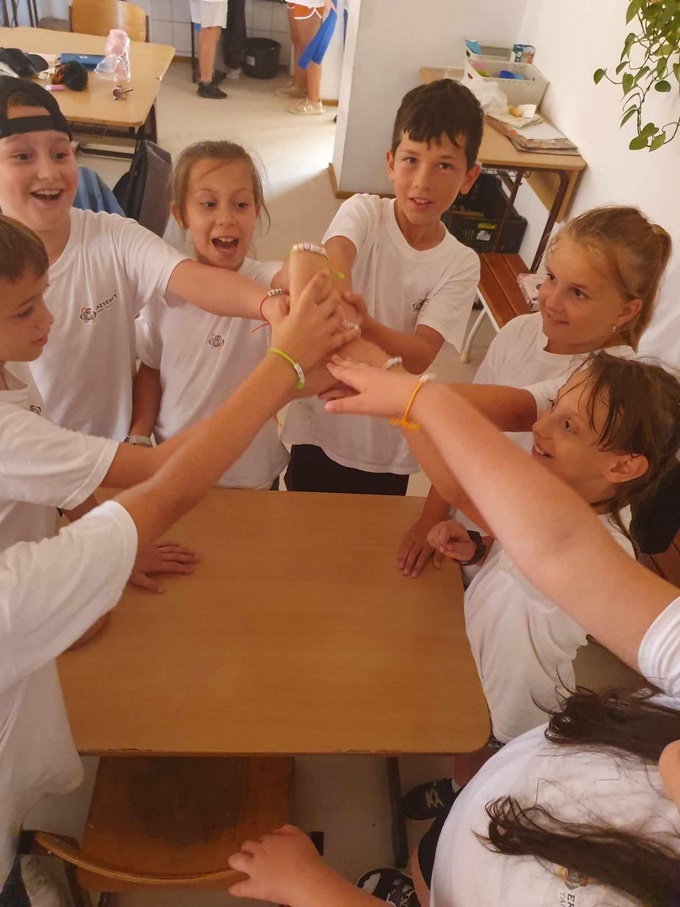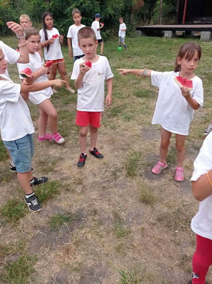 Táborunk harmadik napja is sok érdekes programot tartogatott a számunkra. Reggel jógáztunk, majd egy érdekes előadáson a méhészettel és a vadászattal ismerkedtünk meg. A tízórai után mindenki névre szóló karkötőt készíthetett magának. Újabb vendégek érkeztek hozzánk. A Bucsai Hagyományőrző Íjász Egyesület négy tagja az íjászattal ismertetett meg bennünket, majd mindenki ki is próbálhatta, hogy eltalálja-e a céltáblát. Az ebéd elfogyasztása után a Tájházban Kozma Lajos a kosárfonást, Ács Anita pedig az agyagozás mesterségét mutatta meg nekünk, sőt ki is lehetett próbálni. Vessző karkötőt, agyag tálacskákat készíthettek a gyerekek. Aki éppen nem kézműveskedett, a tájházban kiállított régiségek gyűjteményével ismerkedett. A finom kenyérlángos és dinnye elfogyasztása után kissé fáradtan értünk vissza az iskolába. Köszönjük a mai nap vendégeinek, hogy részvételükkel színesítették ezt a napunkat. Várjuk a holnapi napot!