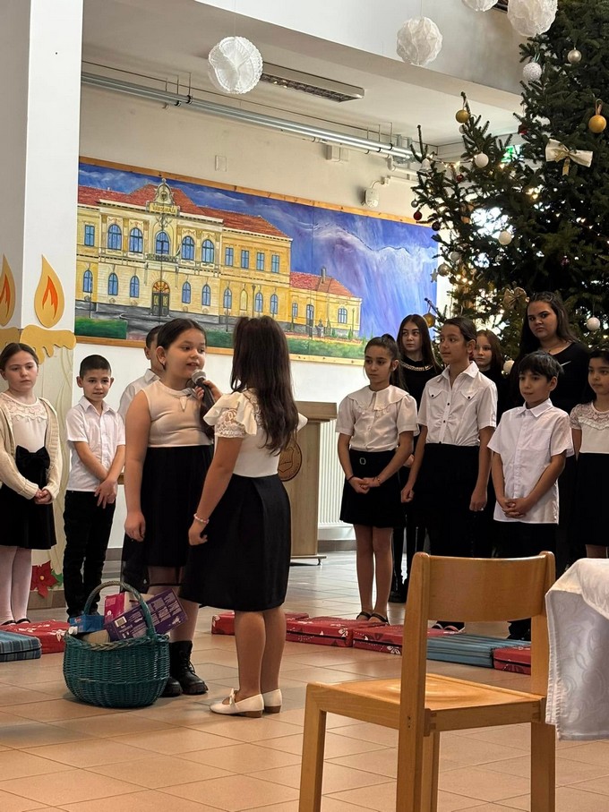 A Szabó Pál Általános Iskola és Alapfokú Művészeti Iskola aulájában a harmadik gyertya lángja is fellobbant az adventi koszorún. Advent harmadik vasárnapján egy fehér angyal száll le közénk, kezében egy fénysugárral. Odamegy mindenkihez, akinek tiszta szeretet lakik a szívében, és ezzel a sugárral megérinti őket. Azután a fény ragyogni kezd az emberek szemében, szívében, s elér a kezükhöz, lábukhoz és egész testükhöz. Így még az aki a legszegényebb az emberek között, az is átalakul, s megszállja a béke, a tiszta szeretet és a boldogság érzése. Megható, kedves műsorral készültek és gyújtották meg az öröm rózsaszín gyertyáját a harmadikos és a nyolcadikos tanulóink.