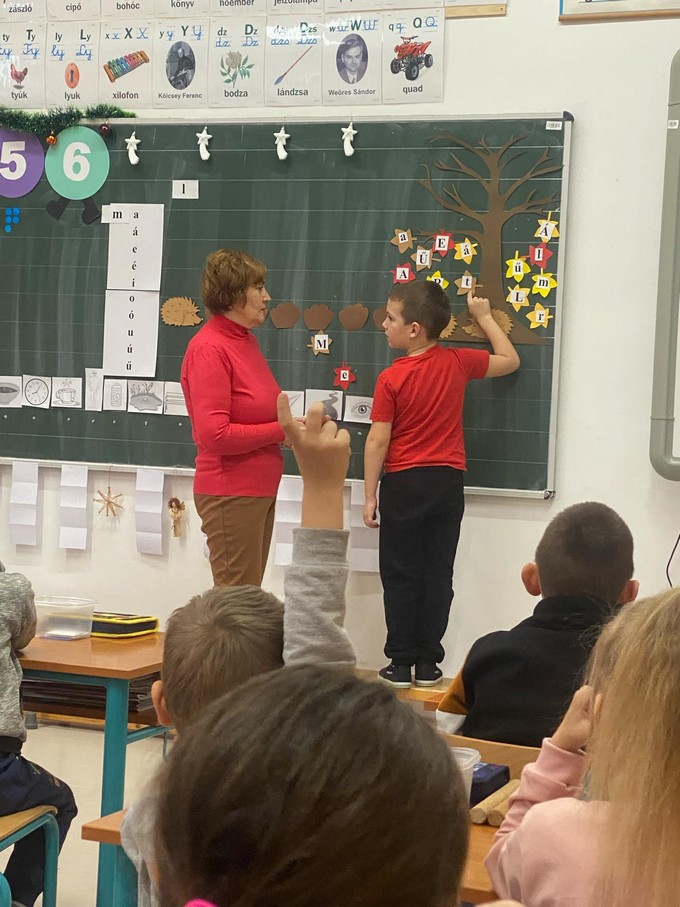 Nyílt óra az 1. osztályban 2024. december 18-án nyílt órán vehettek részt a szülők, a volt óvó nénik és az iskola vezetősége az 1. b osztályban. A kis elsősök egy komplex magyar és matematika óra keretében mutatták be a meghívottaknak, hogy hova jutottak el az elmúlt 3 és fél hónap során két kiváló tanítónő, Lázárné Nagy Margit Katalin és Kenyeres-Varga Anett által. A mesébe ágyazott órán a gyerekek megcsillogtatták olvasási, szövegértési, beszéd és számolási készségüket. Minden tanuló nagyon fegyelmezetten, ügyesen dolgozott. Az érdekes és változatos feladatoknak köszönhetően, végig vidámak és motiváltak voltak. Az órát mesedramatizálással zárták. A gyerekek három óvodából érkeztek, de ennek és a rövid eltelt idő ellenére is máris nagyon jó kis csapat kovácsolódott össze. Hamar beilleszkedtek az osztályba és új barátságok alakultak ki. Köszönhető ez annak is, hogy az osztályban nagyon családias, nyugodt a légkör. A résztvevők nagyon meg voltak elégedve a gyerekek teljesítményével. Az óvó nénik is megnyugodtak, hogy minden gyermek jól érzi magát az iskolában. Igyekszünk mindent megtenni azért, hogy ez a lelkesedés, ami a kicsi diákjainkat most jellemzi, végig kísérje őket a tanulmányaik során.