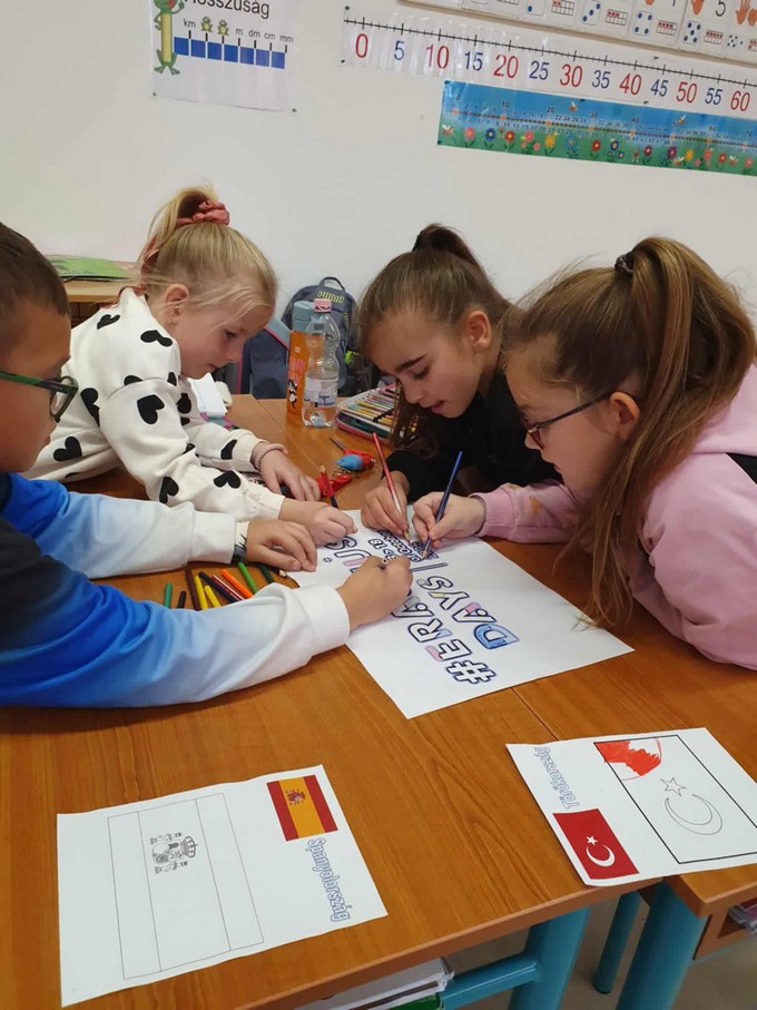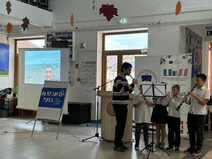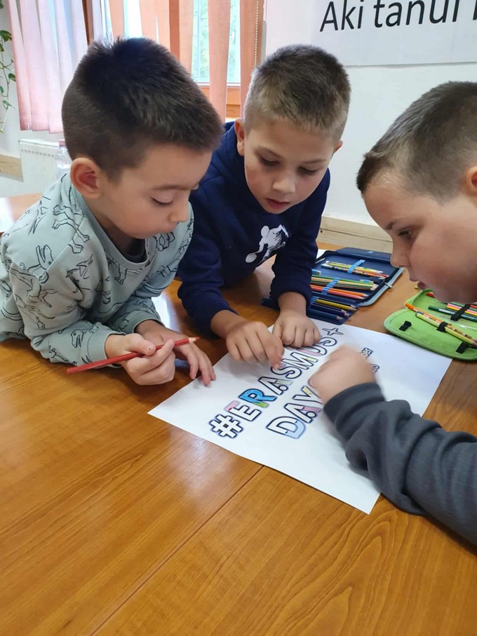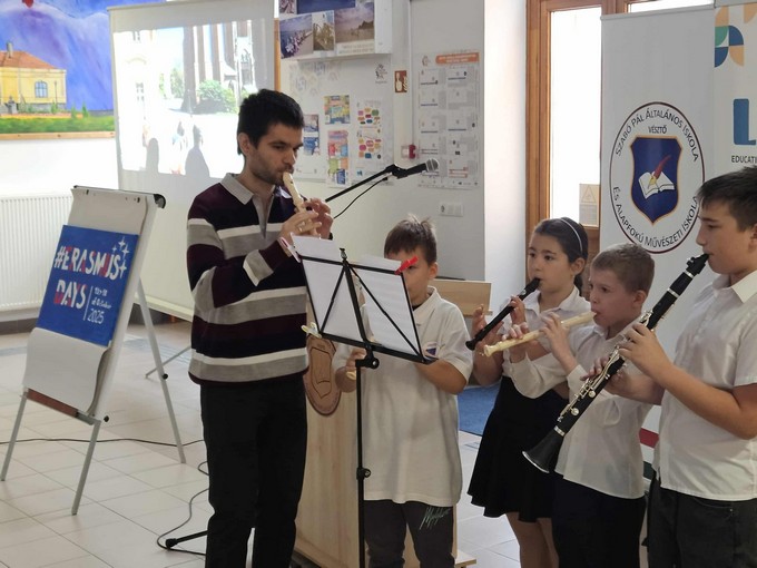 2025. október 18 - án került megrendezésre a Szabó Pál Általános Iskola és Alapfokú Művészeti Iskolában az Erasmus - Day, amely egy híres nemzetközi kezdeményezés. Rengeteg színes programmal készültünk, amelyeknek keresztül a tanulók játékos módon ismerkedhettek meg az Európai Unió országaival, értékeivel. Az eseményt Orbán István főigazgató úr nyitotta meg, beszédében hangsúlyozta az iskolában zajló Erasmus programokat és az idegen nyelv oktatás fontosságát. Szabó Tamás és kollégái valamint a Művészeti Iskola növendékeinek előadásban hallgathattuk meg az Örömódát valamint A zene az kell című dalt. A felső évfolyamok bemutatói által megismerkedhettünk az Európai Unió országaival, nevezetességeivel, az alsósok pedig angol nyelvű versekkel és dalokkal színesítették a programot. Ezt követően iskolánk tanárai és volt diákjai beszéltek saját élményeikről, tapasztalataikról, amelyeket a mobilitások során gyűjtöttek. A következő blokkban több interaktív műhelyben zajlottak a programok, voltak kreatív foglalkozások, sport tevékenység, kultúra és idegen nyelvi sarok, mindezek hozzájárultak ahhoz, hogy a tanulók több információt szerezzenek az európai kultúráról, az országok történelméről. Az esemény zárásaként együtt énekeltük az Örömódát és megtekinthettük a nap folyamán elkészített csodálatos alkotásokat. Köszönjük szépen mindenki hozzájárulását, segítséget! Reméljük, hogy egy igazán izgalmas és tartalmas napra emlékezhetünk vissza! Képek az alsó tagozatból.
