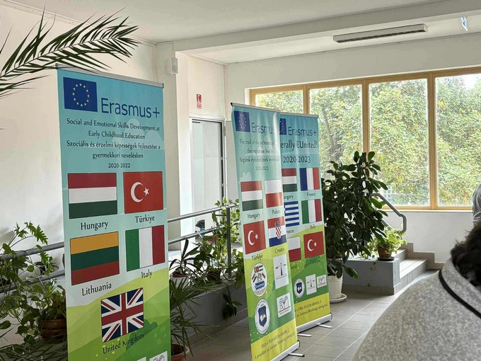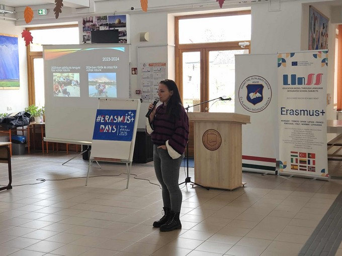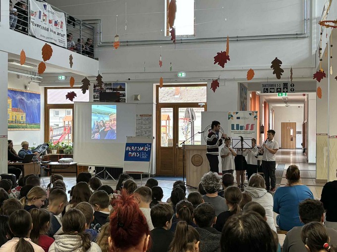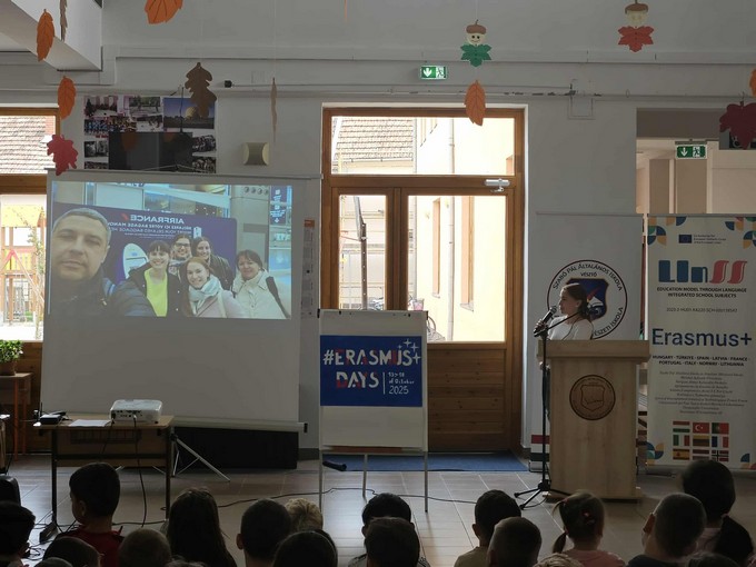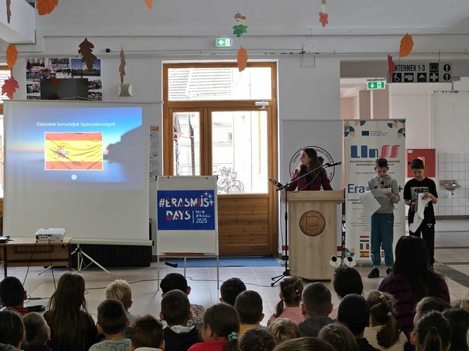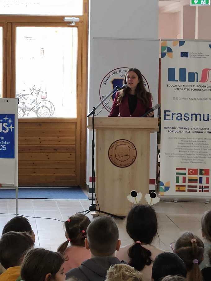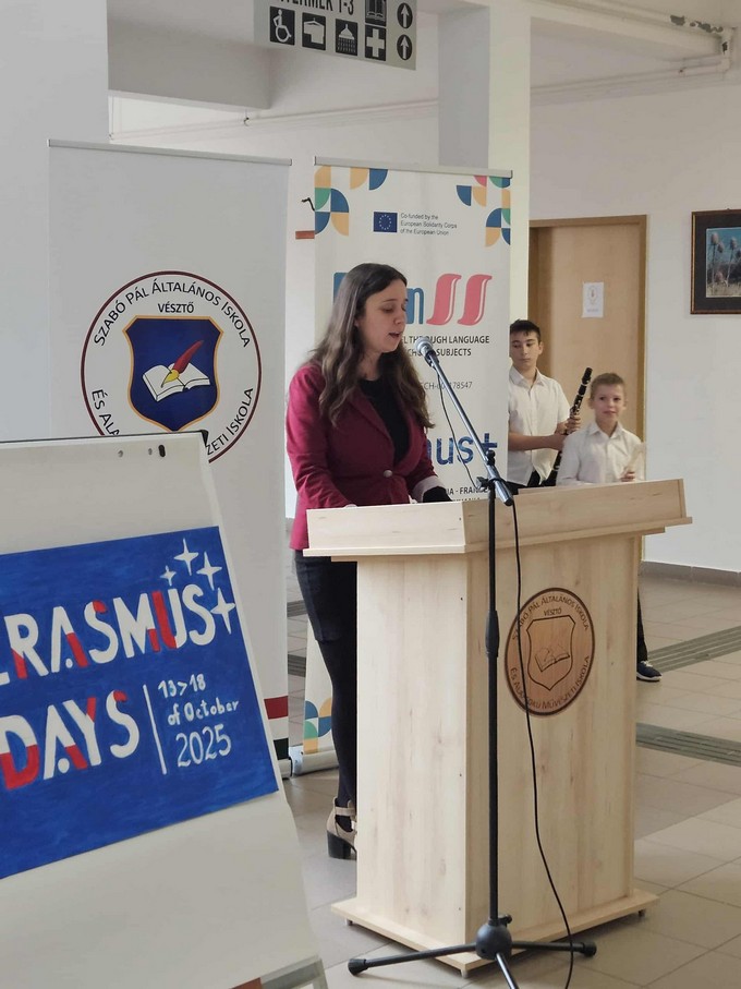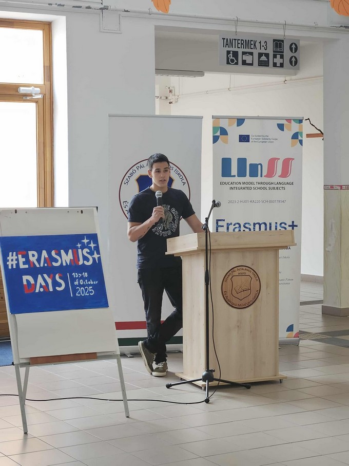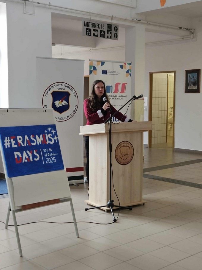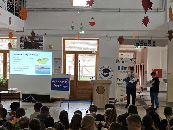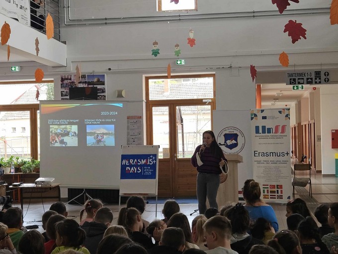 2025. október 18 - án került megrendezésre a Szabó Pál Általános Iskola és Alapfokú Művészeti Iskolában az Erasmus - Day, amely egy híres nemzetközi kezdeményezés. A nap folyamán színes programokon keresztül ismerkedhették meg a tanulók az Európai Unió országaival, értékeivel. Az eseményt Orbán István főigazgató úr nyitotta meg, beszédében hangsúlyozta az iskolában zajló Erasmus programokat és az idegen nyelv oktatás fontosságát. Szabó Tamás és kollégái valamint a Művészeti Iskola növendékeinek előadásban hallgathattuk meg az Örömódát valamint A zene az kell című dalt. A felső évfolyamok bemutatói által megismerkedhettünk az Európai Unió országaival, nevezetességeivel, az alsósok pedig angol nyelvű versekkel és dalokkal színesítették a programot. Ezt követően iskolánk tanárai és volt diákjai beszéltek saját élményeikről, tapasztalataikról, amelyeket a mobilitások során gyűjtöttek. A következő blokkban több interaktív műhelyben zajlottak a programok, voltak kreatív foglalkozások, sport tevékenység, kultúra és idegen nyelvi sarok, mindezek hozzájárultak ahhoz, hogy a tanulók több információt szerezzenek az európai kultúráról, az országok történelméről. Az esemény zárásaként együtt énekeltük az Örömódát és megtekinthettük a nap folyamán elkészített csodálatos alkotásokat. Köszönjük szépen mindenki hozzájárulását, segítséget! Reméljük, hogy egy igazán izgalmas és tartalmas napra emlékezhetünk vissza! Képek a felső tagozatból