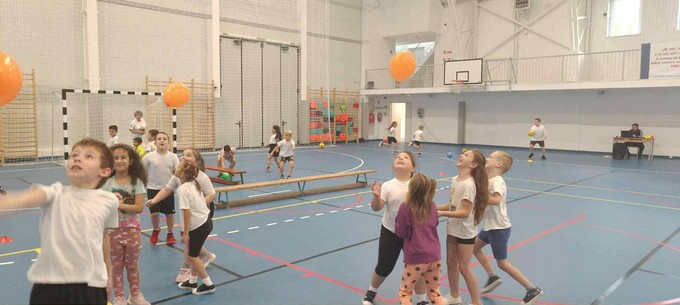 1-2. évfolyam November 4-én délután vidám hangulatban zajlott az Őszi Kézifesztivál a Szabó Pál Általános Iskolában, az Aktív Iskola program keretében. A gyerekek hat állomáson próbálhatták ki ügyességüket. Volt lufi levegőben tartása, labdacica, bombázó, bójadöntögető, szabadulás a labdától és természetesen rengeteg nevetés! Nem verseny volt, hanem igazi mozgásos élmény, ahol a zene ritmusára mindenki nyertesként távozott!