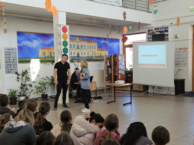 2025. november 17-21. között valósult meg intézményünkben az Egészséges táplálkozás hete, melynek célja az egészséges életmód népszerűsítése, különösen a tudatos táplálkozás és a megfelelő folyadékbevitel fontosságának hangsúlyozására. Aktív Iskolaként a hét minden napát Mozgásban az egészség - aktív szünettel kezdtük, melynek során minden diák kedvére kapcsolódhatott be a Just Dance - be. Hétfőn Kövér Éva, a környezetvédelmi munkaközösség vezetője ismertette a hét programjait és felhívta a figyelmet a vízivás napján a megfelelő folyadékfogyasztás fontosságára. Szerdán 9 órától iskolánk egykori diákja, Szabó Imre tartott előadást Mozgás + tudatos táplálkozás EGÉSZSÉG címmel a felső tagozatos diákoknak. 11 órától Tarr Erzsébet a cukorbetegség tüneteire hívta fel a figyelmet és arra, hogyan lehet teljes életet élni cukorbetegen. 15:30 - tól iskolánk pedagógusa, Dugmonits Csilla Mária a szülők számára adott néhány tanácsot EGÉSZSÉGES TÁPLÁLKOZÁS GYERMEKEINKÉRT ? amit otthon tehetünk című előadásában. A csütörtök is rejtegetett érdekes témákat. Szabó Katalin főigazgató ? helyettes, az Aktív Iskola koordinátori csapat vezetője, és Turbucz János rendszergazda a MEGFELELŐ TÁPLÁLKOZÁS, MEGFELELŐ ALVÁS, ENERGIA AZ EGÉSZSÉGHEZ témájú tanórán a kalóriaszámláló és alvást támogató applikációkat mutatták be a diákoknak. A hét során a sokrétű szemléletformáló eseményeknek köszönhetően minden résztvevő számára világossá vált, hogy az egészséges táplálkozás, a megfelelő folyadékfogyasztás, a túlzottan feldolgozott élelmiszerek kerülése, és a megfelelő alvás a hosszú távú egészség megőrzésének kulcsa.