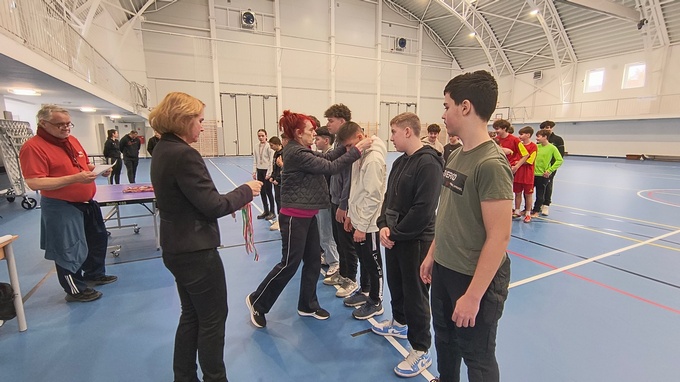 III. SZABÓ PÁL-SZEGEDI ELEK TEREMLABDARÚGÓ TORNA Immáron hagyományosan, évente, február elején rendezi meg iskolánk a körzet általános iskoláinak részvételével a SZABÓ PÁL - SZEGEDI ELEK Teremlabdarúgó tornát. Az évekkel ezelőtti néhány csapatos verseny, jó hírének köszönhetően idén már 5 iskola hat csapatának adott lehetőséget a megmérettetésre. Szeghalom 2 csapat, Bucsa, Körösladány, Füzesgyarmat és Vésztő általános iskoláinak csapatai mérkőztek egymással. A két csoportba osztott csapatok először körmérkőzéseket játszottak, majd a helyezéseik alapján helyosztókat és végül a helyezéseket eldöntő mérkőzéseket játszottak. Iskolánk csapata, csoportjában a második helyen végzett, mely után egy szoros, izgalmakban bővelkedő mérkőzés végén büntetőkkel verte a Füzesgyarmat csapatát, így jogot szereztünk a döntő mérkőzés lejátszására a Szeghalom?A? csapatával. A döntőbe kissé fáradtan, de lelkesen küzdve alulmaradtunk a szeghalmi csapattal szemben, ám összességében nem lehet okunk a panaszra. A lejátszott 11 mérkőzés ismét bizonyította, hogy az akarás, játék, csapatszellem egymást erősítve jó eredmények elérésére sarkall, gyermeket, felnőttet. A végelszámolásnál a helyezettek és vezetőik érem, oklevél díjazásban részesültek, míg a legjobb kapus: Novák Máté - Vésztő, gólkirály: Farkas Ármin - Szeghalom, legjobb hazai játékos: Pap Zalán, a legjobb mezőnyjátékos: Koncz Levente - Szeghalom serleg díjazásban részesültek. Csapatunk tagjai: Jámbor Tamás, Jámbor Zsolt, Ásós Imre, Bada Nándor, Tóth Levente, Torzsa Dóra, Novák Máté, Sánta Kornél, Tölcsér István, Pap Zalán Gratulálunk minden résztvevőnek, felkészítőnek. Köszönjük Balló Bíborka és Kovács Tamás testnevelők szervező, lebonyolító munkáját és Tóth Anna Anikó segítségét.