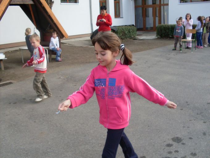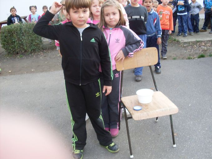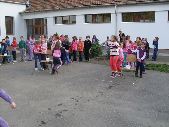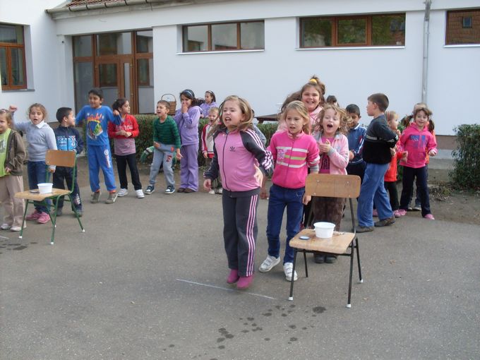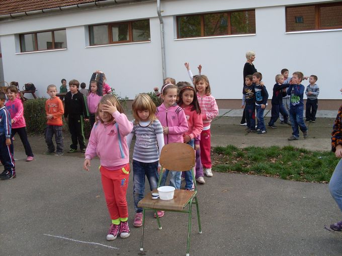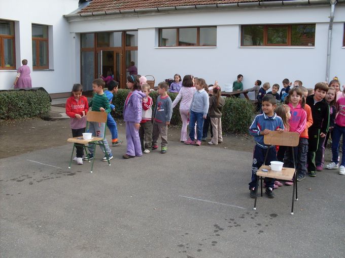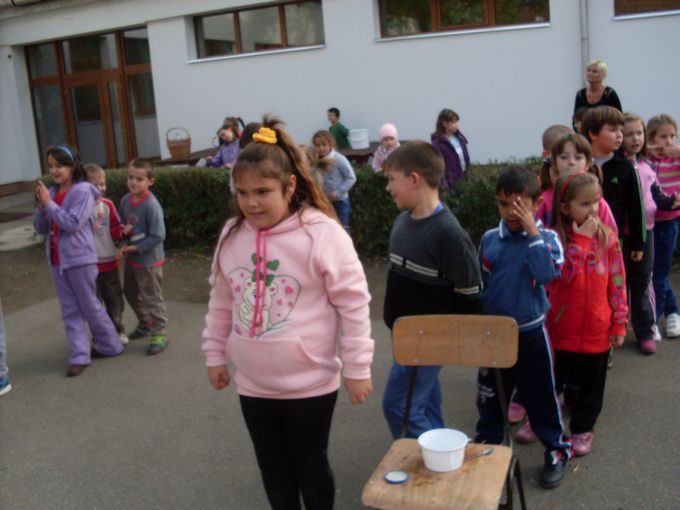 2013.november 8-án egész napos programban vett részt 25 alsó tagozatos gyermek és Szilágyiné Bak Anita tanító néni. A délelőtt folyamán szólásokat, közmondásokat kellett kiegészíteni és megmagyarázni a jelentésüket, majd vízzel, gázzal, elektromos árammal kapcsolatos puzzle-kat raktak ki nagy igyekezettel. Tíz órakor elmentünk a közeli zöldséges bolthoz, ahol több fajta gyümölcsből is vásároltunk. A gyerekek számolták ki a pénzt és fizettek az árukért, ami nagyon tetszett nekik. Ezután visszasétáltunk az iskolába, és alapos kézmosás után nekiláttunk a gyümölcssaláta elkészítésének. Ebéd után három vegyes csapat az udvaron vizes váltóversenyben vett részt, ahol különböző méretű edényekben kellett minél több vizet eljuttatni egy tálkába. Az iskola többi tanulója nagy hangon biztatta társait. A nap zárásaként megettük a jól megérdemelt gyümölcssalátát, amely a gyerekek szerint nagyon finom lett.